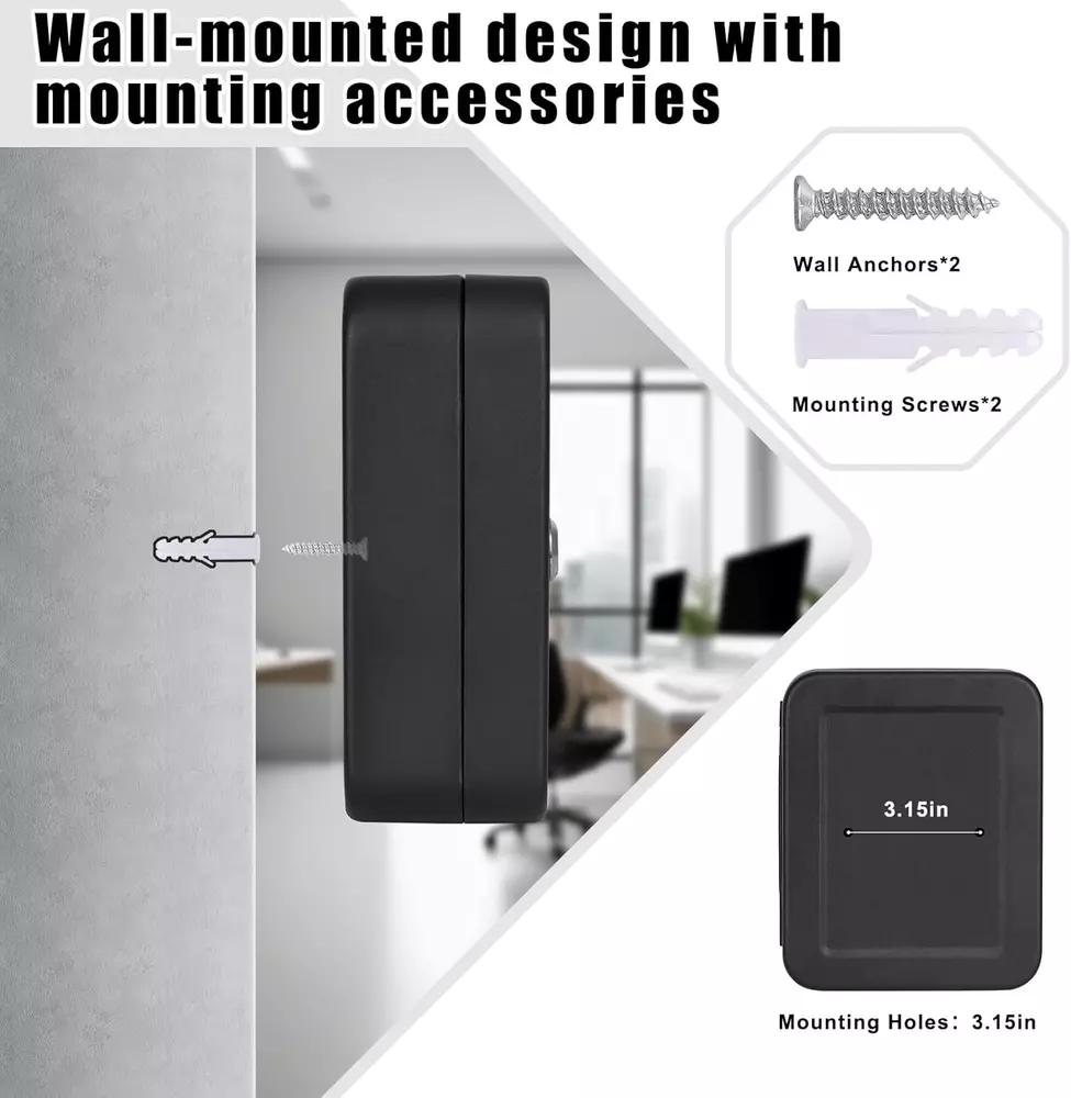 KEY STORAGE BOX: Keep keys security Key lock box includes 20 key rings, identification tags, and key labels SECURE DESIGN WITH KEY LOCK: The lockable wall mount keybox is made of a strong metal with two keys, and it gives faster and more immediate access. WALL MOUNTED DESIGN: Packing included 2 screws and 2 wall anchors for easy and stable installation onto the wall MULTIPURPOSE:Ideal for home, office, apartment complex, boat dealers, rental car agencies, car lots, body shops and more HIGH-QUALITY:Our key box with code is made of heavy-duty steel that provides prime security and long-term durability throughout the years. Easy to mount. Product Description Different Types of Key Cabinet Add to Cart Add to Cart Add to Cart Add to Cart Add to Cart Customer Reviews 4.5 out of 5 stars 2,061 4.5 out of 5 stars 2,061 4.6 out of 5 stars 1,892 4.6 out of 5 stars 1,892 4.6 out of 5 stars 1,892 Price $15.99 $ 15 . 99 $21.99 $ 21 . 99 $29.99 $ 29 . 99 $29.99 $ 29 . 99 $79.99 $ 79 . 99 Lockable ✔ ✔ ✔ ✔ ✔ Size 7.87"x6.3"x3.14" 10"x7"x3" 2.5"D x 8.1"W x 12.1"H 2.5"D x 8.1"W x 12.1"H 3.94"D x 12"W x 14.3"H Color Black Black Black White Black Lock Type Key Lock Combination Lock Key Lock Combination Lock Digital Lock Key Storage 20K 48K 40K 40K 60K