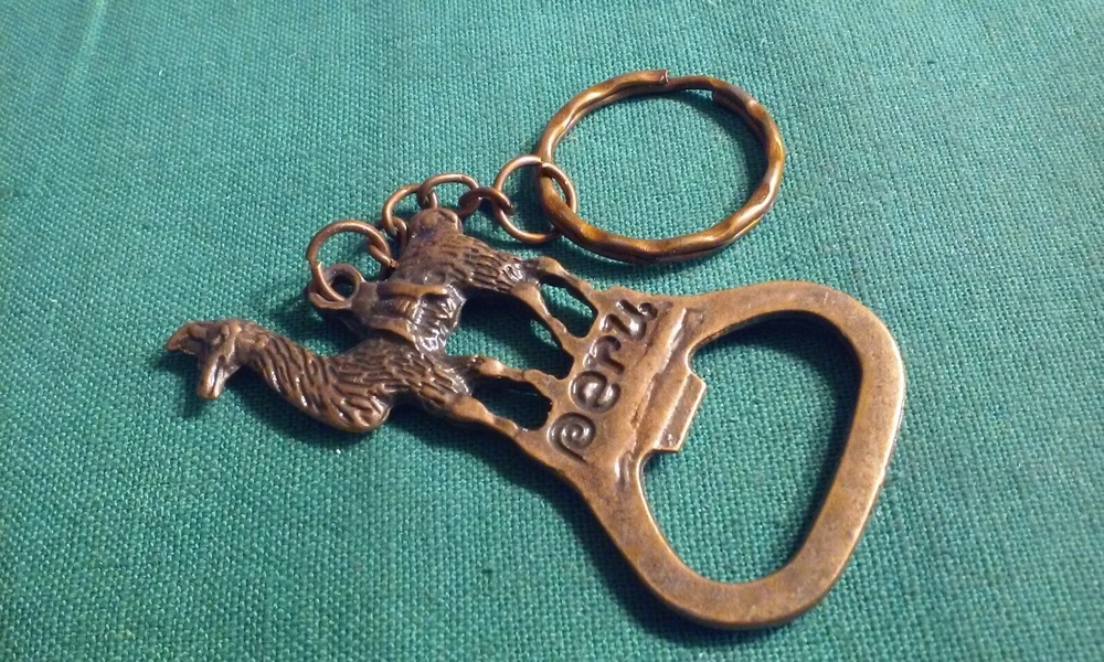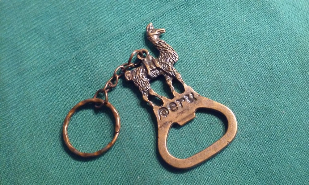 Key Chain LLama Peru Bronze or Copper Tone Metal Souvenir Bottle Opener Unused