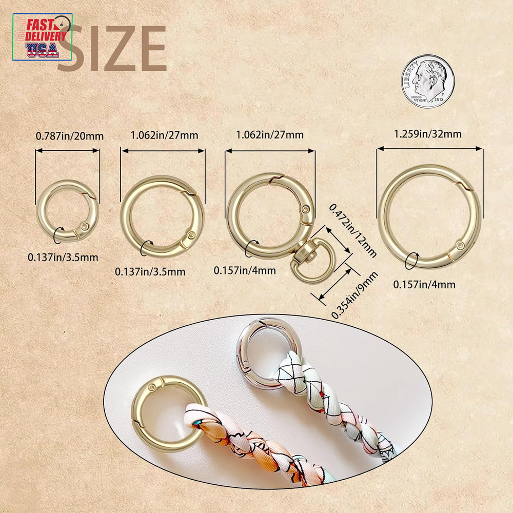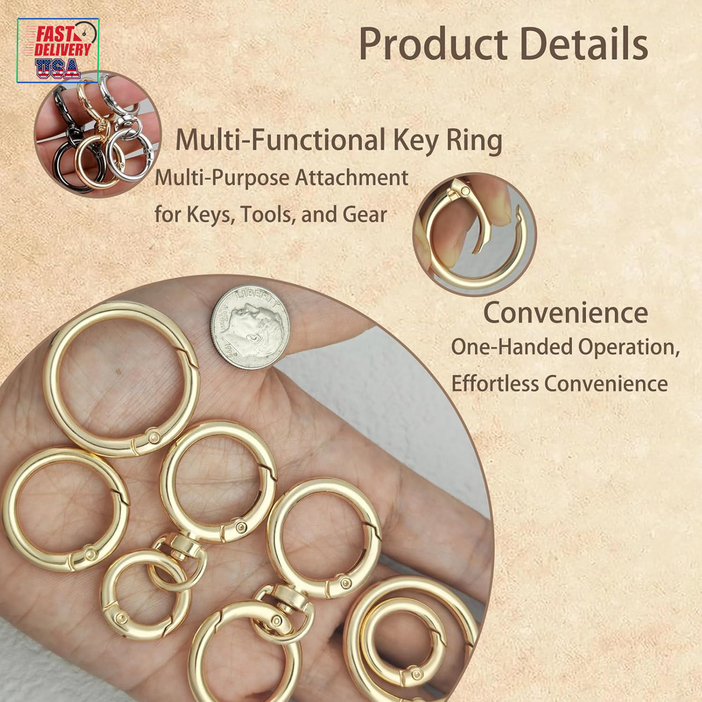 Store New Arrivals Add to Favorite View Feedback Contact Key Ring Clip Spring Carabiner Key Ring O Rings Clip Keychain,Round Carabiner Purse Wrist Strap Closure Shoulder Bag Chain Rings Clip Lanyard Leather DIY Crafts as Valentine Gift(Silver) Description Item model number A Style Clip On Color Silver Material Zinc Country of Origin China Item Weight 35 Grams Number of Pieces 2, 8 Finish Type Polished Product Dimensions 12.9 x 12.9 x 1.49 inches Widely Used:Round carabiner clip is easy to open and close, can be quickly attached and removed, carabiner key ring Ideal for keychains, wallet wrist strap clips, cell phone chain clips, handbag extension rings or replacement rings for straps, spring keychain clips are an indispensable quality accessory for repairing items. Material: Spring O-rings are made of high quality alloy material, light weight and not easy to fade. Size:8pcs silver spring wire key ring contains four different sizes. 2pcs OD:20mm wire diameter 3mm. 2pcs OD:26.6mm wire diameter 3.8mm 2pcs with swivel ring OD26.6mm wire diameter 3.8mm: 2pcs OD32.6mm wire diameter 3.8mm. Carabiner Matching: spring o ring can be attached to most items, dog collar tags, cell phone chain buckles, bag wrist strap buckles, bag shoulder strap buckles, key rings, charm clips, outdoor umbrella rope key chain lanyards and other DIY accessories. Note:For safety reasons, do not use these connecting carabiners for overly strenuous sports such as mountaineering or rock climbing. Product Description ABOUT US We offer the best prices around on high quality products. Our E-store includes media such as books, movies, music and games while offering electronics, toys, sporting apparel, clothing, tools, general home, garden items and more. SHIPPING We are always working hard to ensure your package arrives as soon as possible. Please understand that some factors like weather, high postal traffic, and the performance of shipping companies are outside of our control. We offer free shipping to the lower 48 states and ship within 2 business days of payment, usually sooner. We do not accept P.O. Boxes. Please provide a physical address. For shipping outside of the continental USA, we only use eBay's Global Shipping Program.The item is shipped to KY and then sent to the rest of the world. International customers are responsible for all duties and taxes. Continue to check out in order to calculate costs for shipping the item to your country. Messages regarding eBay's Global Shipping Program MUST be directed at eBay EXCLUSIVELY. RETURNS We offer a 30-Day Return Policy on items which you are not completely satisfied with. You have the option for a full-refund or an exchange of the item. No returns are available on items shipped outside of the USA. PAYMENT We accept PayPal. CONTACT US This page content is yet to come Please ad us to your favorite seller and visit again later Thank You CUSTOMER SATISFACTION We try our very best to make sure every customer is completely satisfied. If there's a problem, message us! We're happy to help. WE ACCEPT Copyright © 2021 AutoDS. | All Rights Reserved