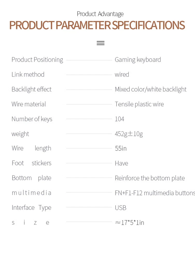 Mechanical Keyboard Blue Black Brown Switch 104 Keys USB Wired Gaming Keyboards