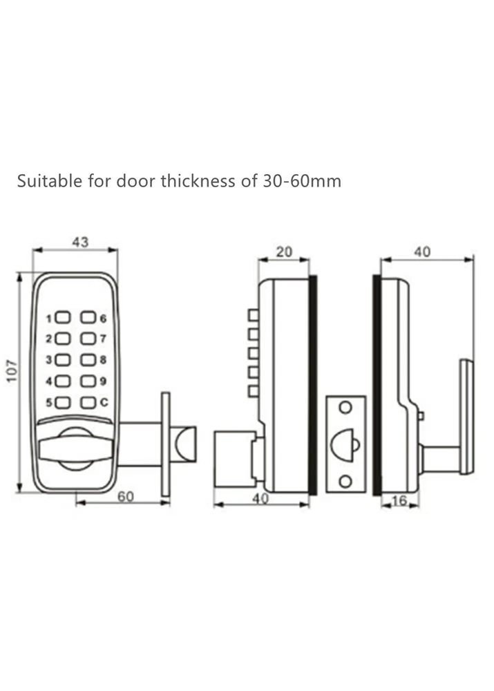 Mechanical Door Lock Keyless Entry Digital Code Keypad Security Combination Description Keyless Door Lock Keypad Electronic Mechanical Digital Code Entry 2-4 Digits This is an energy-saving password lock that does not need any power supply at all. It is suitable for indoor and outdoor doors. The 2-4-bit password is very safe and easy to install. It is a suitable choice. If you use the initial password, please keep the initial password card(Each lock has a different password). If you forget the password, you will not be able to open it from the outside and need a professional to unlock it. Specification: Colour: Silver Panel size: 107*42*25mm Panel Material: Aluminum Alloy Lock material: steel + zinc Applicable door thickness: 30-60 mm(The thickness of the door in the installation position is 3-6cm and the width of the door frame is 8.5cm or more. If the original door has a lock on it, you need to have seen the picture of the door to know if it can cover the original hole position and cannot guarantee the fit. The new door has not been opened, and it is possible to install it in accordance with the size requirements.) Lock tongue center distance: 60 mm Note: Both left and right doors are applicable, password numbers can not be repeated (like 8888) Features: 1.No keys and cards, no battery power. 2.Keystroke sensitivity. 3.The password can be changed at any time, and the operation is simple. Package Included: 1 x Password lock 1 x Instructions (English) Note: Due to the different display and different light, the picture may not reflect the actual color of the item. Thanks for your understanding. Due to different producing batches, product details might be a little different. If you minding the difference, please buy it carefully. Kindly reminder:If your door is not new,please make sure the size is suitable before you place an order.if it is not suitable, maybe the lock can't cover the original lock holes. note: If there are installation holes on the door, please confirm whether it can cover the original holes according to the product size provided by us (It's not appropriate if cannot be covered) Notes: The installation of this lock requires a door thickness of 3-6cm. The installation position of the lock should be at least 8.5cm wide, and the door gap should be between 0.2-0.5cm Notes: The installation of this lock requires a door thickness of 3-6cm. The installation position of the lock should be at least 8.5cm wide, and the door gap should be between 0.2-0.5cm Payment Delivery details Terms of sales About us Contact us Payment We accept ebay payment 。 Fees such as import duties, taxes are not included in the item price or shipping costs. These charges are the buyer's responsibility. Delivery details Shipping: 2-9 working days to: USA Terms of sales We maintain high standards of excellence and strive for hundred percent customer satisfaction. Feedback is very important to us. We hope that you contact us immediately before you give neutral or negative feedback, so that we can address your concerns. It is impossible to address issues if we do not know about them! About us Your satis faction is our ultimate goal. We work hard to earn your trust and future business. Our certified technicians have tested each item before shipping. The unit comes with 1 year limited warranty on all manufacturing defects. a) If you receive a defective item, you may return it or ask for a discount. Please contact us within 14 days after you receive the package. b) What you returned must be intact and in its original packaging as re? u. Customer is responsible for shipping costs of the returned item. c) We will cover the cost of shipping back t with the shipping rate indicated in the registration page. We will send you a new unit or refund the full payment you paid. Thank you. Contact us Business Hour Business Hour: Monday To Friday: 8:30 AM to 5:00 PM (Beijing China time) Due to time zones, our reply to your questions may not be immediately. But within above working time, we will reply your email within 24 hours. If it's non-workdays, please kindly be patient and wait till Monday. Please contact us with ebay message. Please feel free to contact us if you have any questions. Monday To Friday: 8:30 AM to 5:00 PM (Beijing China time) Due to time zones, our reply to your questions may not be immediately. But within above working time, we will reply your email within 24 hours. If it's non-workdays, please kindly be patient and wait till Monday. Please contact us with ebay message. Please feel free to contact us if you have any questions. * Feature * Compact Design,Unique Appearance Festure 1 Stable performance,Safe to Use Country/Region of Manufacture Unknown Feature 2 Fast Shipping Tips If you have any questions, please contact us! *Festure 1 ❤Beautiful Appearance❤ Feature * Stable characteristic,High reliability Brand Unbranded Feature/1 Best after-sales service Features 1* Protective Packaging !✨👍 Key Features**2 High-quality Material !✨❤ Key Features 1 Good Compatibility !💕✨ highlight 2** Same as in the pictures!!✨ Feature~~ Fast shipping, Best service 3Features Stable performance, Long service life, Creative Design, Durable Material, Beautiful Appearance *Festures1 Durable Material,Good quality Feature3 Stable characteristic,high reliability Feature*1 Fast delivery !Features Compact Design, Unique Appearance, High quality Feature 3 Compact Design,Unique Appearance shipping notice Can not ship to Puerto Rico,Alaska/Hawaii Type Password Lock MPN Does Not Apply Combination 2-4 digits Panel Material Aluminum Alloy Lock material steel + zinc Applicable door thickness 30-60 mm Lock tongue center distance 60 mm Color Silver Panel size 107*42*25mm Installation Type universal Material Aluminum Alloy Suitable For Interior/ Room Door Style Modern ANSI Grade ANSI Grade 3 (Good) Finish Brushed Custom Bundle Yes UPC Does not apply