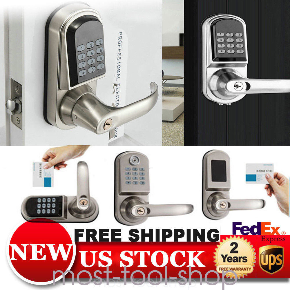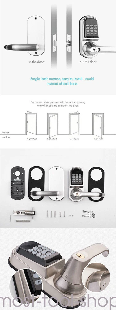 Cartoon: the Mifare-1 card, open interfaces, campus card, bus cards can directly set unlock card High purity silicone: wear resistance, stable,Durable, anti-collision Simplified easy installation,make your home and property safe Simplified easy installation Easy to change batteries User deleted individually ANSI Grade 2 / ROHS certified Keypad Shutdown: 10s if a code is wrongly input 3 times Smart Digital Electronic Door Lock Password Keyless Keypad Security Entry Door Description Features: Cartoon: the Mifare-1 card, open interfaces, campus card, bus cards can directly set unlock card High purity silicone: wear resistance, stable,Durable, anti-collision Simplified easy installation,make your home and property safe Simplified easy installation Easy to change batteries User deleted individually ANSI Grade 2 / ROHS certified Keypad Shutdown: 10s if a code is wrongly input 3 times Specification: Material: Zinc Alloy, Stainless Steel Handle: Left handle, Right handle Standard Mortise: Single Latch Door Thickness Requirement: =3.8cm~5.0cm (Single), over 5.0cm, please contact us for tailor-made Door frame≥110mm(Thickness different doors) Locking Method: Automatic Dynamic Power Consumption: 150-300mA Working Temperature: -30C to 70C Working Humidity: 10%-97% Card read distance: 3cm Static current: ≤30uA Working current: ≤200mA Unlock way: Card, Code, Code+card, Mechanical key Code length: 4-8 digits User capacity: 200 Users Power Supply: 4X1.5v AA Alkaline Batteries (Not included) Welcome to Most-Tool-Shop Thank you for your support! If you have any questions,please feel free to contact us!!! Payment Delivery details Terms of sales About us Contact us Payment We accept ebay payment 。 Fees such as import duties, taxes are not included in the item price or shipping costs. These charges are the buyer's responsibility. Delivery details Shipping: 2-9 working days to: USA Terms of sales We maintain high standards of excellence and strive for hundred percent customer satisfaction. Feedback is very important to us. We hope that you contact us immediately before you give neutral or negative feedback, so that we can address your concerns. It is impossible to address issues if we do not know about them! About us Your satis faction is our ultimate goal. We work hard to earn your trust and future business. Our certified technicians have tested each item before shipping. The unit comes with 1 year limited warranty on all manufacturing defects. a) If you receive a defective item, you may return it or ask for a discount. Please contact us within 14 days after you receive the package. b) What you returned must be intact and in its original packaging as re? u. Customer is responsible for shipping costs of the returned item. c) We will cover the cost of shipping back t with the shipping rate indicated in the registration page. We will send you a new unit or refund the full payment you paid. Thank you. Contact us Business Hour Business Hour: Monday To Friday: 8:30 AM to 5:00 PM (Beijing China time) Due to time zones, our reply to your questions may not be immediately. But within above working time, we will reply your email within 24 hours. If it's non-workdays, please kindly be patient and wait till Monday. Please contact us with ebay message. Please feel free to contact us if you have any questions. Monday To Friday: 8:30 AM to 5:00 PM (Beijing China time) Due to time zones, our reply to your questions may not be immediately. But within above working time, we will reply your email within 24 hours. If it's non-workdays, please kindly be patient and wait till Monday. Please contact us with ebay message. Please feel free to contact us if you have any questions.