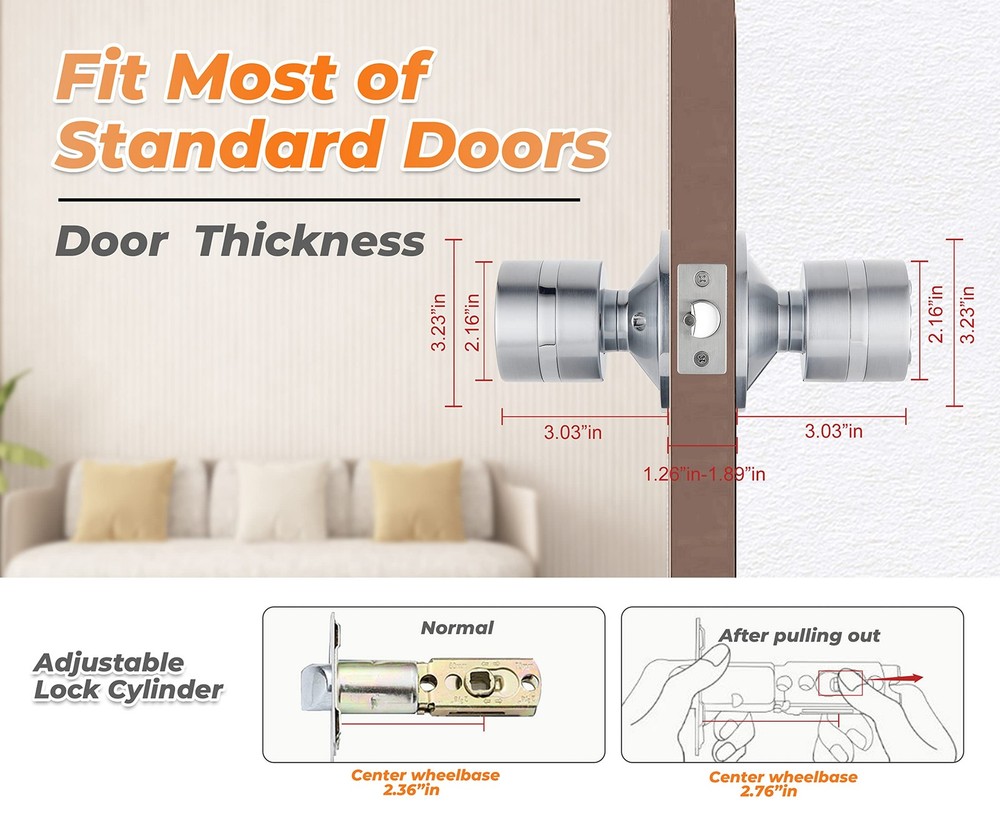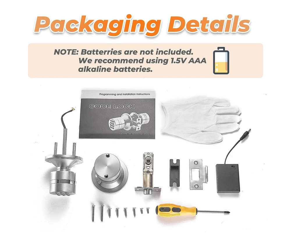 Keyless Electronic Entry Door Knob, Keypad Smart Door Knob, Interior Door Handle with Lock, Automatic Locking, Battery Backup, Backlight, Easy Installation, Great for Home, Hotel and Office 【Easy to Install and Use】 This digital door knob is very easy to install. All you need is a screwdriver and you can install this lock in 10 minutes. This keypad door lock is suitable in most standard doors in the United States.11 【Safe & Useful】 The keypad door knob enter lock is up to 8 changeable codes. Anti spy code encryption. With automatic locking retractor, the door will automatically lock behind you after opening for 3 seconds. IP65 weatherproof,works great in any weather. 【Multi-Function】 The Smart door knobs can be used all year round and has a low power alert mode. An emergency power charger is included in the package, and the lock has a backup battery port that can be recharged at any time in case the battery runs out. 【Smart Keyboard】 The lock key is backlit to prevent password peeking. And the lock button lights up so you can see the numbers clearly when you use lock at night. 【Wide Applicability】 There is a wide range of application of this digital door knob and it can be widely used in all kinds of doors of different materials. This smart lock is suitable for different scenarios, bedroom, study, garage, basement, office, hotel, Apartment, etc.