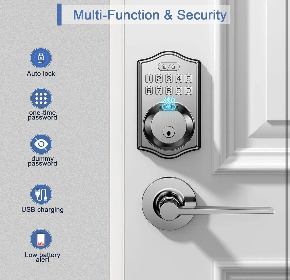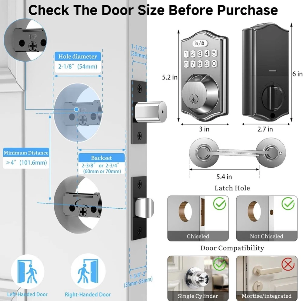 This keyless entry door lock deadbolt with lever set is the perfect addition to your home security. With a sleek silver color and made of durable aluminum and nickel materials, this lock is suitable for your front door and offers universal mounting options. The set comes complete with a deadbolt and lever, making it easy to install and use. Designed for convenience and security, this lock is ideal for those who want to eliminate the need for keys or for those who want an extra layer of protection. Whether you’re looking to upgrade your home or simply want to add an extra layer of security, this keyless entry door lock deadbolt with lever set is the perfect choice.