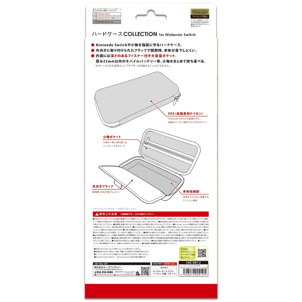 c1c403hotx Thank you for visiting! This store sells products regularly every day. Click "♡Save Seller"! We will send you a message when new products are posted. If you have any questions, please feel free to contact us. We will respond promptly within 24 hours. [ Description ] Keys Factory Nintendo Licensed Product Hard Case Collection CHC-007-2 A hard case that protects nintendo Switch itself (the body equipped with Joy-Con) and accessories. ■ Softly protects the body in the main body storage part with high cushioning. ■ Large capacity pocket with deep zipper on the inside. Small items such as mobile batteries within 23mm thick can be carried together. ■ Nintendo Switch (organic EL model) can also be stored. ■ * Nintendo genuine AC adapter cannot be stored in pockets. [Caution: Customs duties] Purchases on eBay are personal imports. Customs duties are always charged if the import amount exceeds the set amount for each country. Example: Over 800 USD in the US, over 15 USD in Canada, over 174 USD in Germany (If you would like to know in advance, please feel free to contact us) - If the customs duties are not paid, the item will not clear customs and will be returned to Japan. In that case, the customs duties and return shipping fee will still be charged to you. Therefore, if you are contacted by the delivery company to pay the customs duties, be sure to complete the payment within 3 days. - eBay does not allow cancellations due to refusal to pay customs duties. Therefore, if you do this, the product price will not be refunded, even if you refuse to receive the product. - Customs duties are not included in the product price. Due to ebay rules, these charges are 100% buyer's responsibility. * Description Authenticity: 100% AUTHENTIC! We have multiple items in stock. To avoid troubles, please purchase the product after you understand and confirm the condition of the product. [ About Outlet Products ] Outlet products are available as well. It is possible that materials, fabrics or other details of these items may be different from the original ones even if they have the same model numbers. In addition, it may happen that some stains or scratches cannot be repaired. Please note that outlet products will not be acceptable for after-sales service. Thank you for your understanding. [ Country of Manufacture ] If there is no description of Made in Japan on the listing page, Products are manufactured in other countries (other than Japan, such as China and Vietnam). [ Manual & Menu Language ] Most of our products are items used in the Japanese market. So the item only has Japanese manual and menu language. If you need a manual or menu in English or your country's language, please obtain it yourself from the official website. [ Electronics ] Japan Voltage : 100V Please check your country's voltage before order. Buyer may need down transfomer to use our item, Because most of country's voltage is higher than 100V. Plug: TypeA Please check your country's plug. Buyer may need exchange plug. [ International Buyers - Please Note ] Import duties, taxes and charges are not included in the item price or shipping charges. These charges are the buyer's responsibility. Please check with your country's customs office to determine what these additional costs will be prior to bidding/buying. These charges are normally collected by the delivering freight (shipping) company or when you pick the item up - do not confuse them for additional shipping charges. We do not mark merchandise values below value or mark items as "gifts" US and International government regulations prohibit such behavior. [ Shipping Method ] Free shipping worldwide with tracking number.FedEx, DHL and etc Fast Shipping2-5 business days after shipping(Tracking number + insurance.)