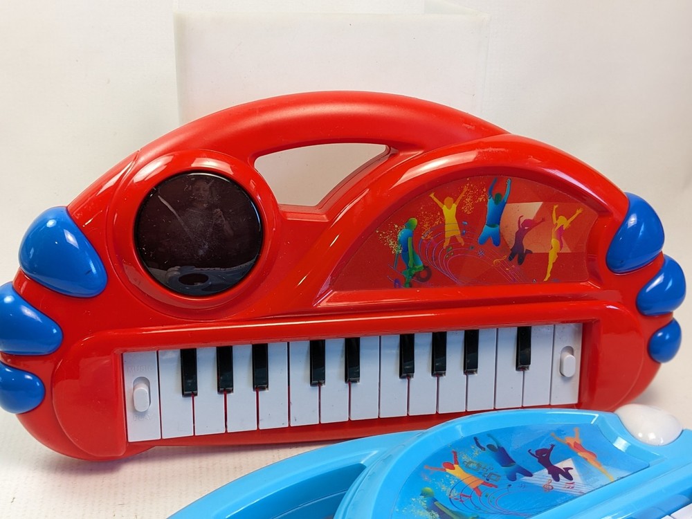 COMBINE SHIPPING AND SAVE: For every order placed after your first purchase in this category, you'll enjoy a 50% reduction on the shipping rate. Discover more items in this category in our store! This bundle includes: - red piano - blue piano • MUSICAL LEARNING ΤΟΥ - Kidplokio "Little Pianist" piano is a great interactive musical toy for budding rock stars; Features a variety of rhythm, music, tempo, and playback sounds for the ultimate concert experience • EDUCATIONAL DEVELOPMENT - Colorful musical piano toy introduces little ones to sounds, vibrant colors, and shapes that stimulate hand-eye coordination, music cognition, and fine motor skills • ΡΙΑΝΟ ΤΟΥ FEATURES - Keyboard comes with 24 musical keys, 6 instrument buttons flashing lights, and an easy-to-use on/off switch; Also features volume control buttons (parents control the volume!) • PERFECT FOR TRAVEL - Kids organ piano toy comes with a sturdy travel handle so they can take it on the go to playdates, slumber parties, and road trips; Pre-owned items, used condition showing minor signs of wear and use. Tested and work as intended. No batteries included. All images provided accurately represent the item(s) you will receive and should be regarded as an integral part of the description. We encourage you to carefully review each image. If you have any questions or need further details about this listing, please feel free to reach out to us. Thank you for considering this item! We hope you find exactly what you're looking for. However, we also invite you to take a moment to browse through our entire store. We have a wide range of listings featuring unique and interesting items that might catch your eye. From rare collectibles to everyday essentials, our store is filled with surprises waiting to be discovered. Take a look around and see what other treasures you might find!"