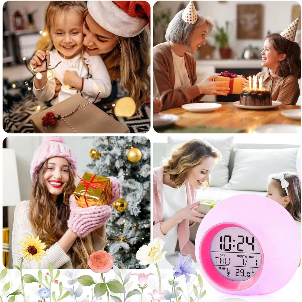 Kids Alarm Clock,Moon Stars Projector Clock,7 Color Changing Night Pink Product Details Brand: Tarklanda Color: Pink Display Type: Digital Style: Modern Special Feature: Snooze, Temperature Display, Alarm Product Dimensions: 3.5"W x 4"H Power Source: Battery Powered Age Range (Description): Kid Room Type: Bedroom Shape: Round Indoor/Outdoor Usage: Indoor Material: Plastic Theme: Rainbow Frame Material: Acrylonitrile Butadiene Styrene Are Batteries Included: No Mounting Type: Tabletop Number of Batteries: 3 Unknown batteries required. Alarm Clock: Yes Watch Movement: Automatic Number of Items: 1 Operation Mode: Atomic Manufacturer: Tarklanda Item Weight: 3.52 ounces Batteries: 3 Unknown batteries required. Batteries required: No 【7 Color Night Light】This kids alarm clocks has 7 rainbow color night light, It can be used as a wake up light, multicolored night lights, mood night light, atmosphere lighting,kids bedroom clocks, and will reflect the stars and moon. 【Materials】The pleasant-looking kids alarm clock is made of high-quality ABS material, It is safe for kids. You can enjoy a peace of mind while for children using. 【Easy to Use】The setting of this alarm clock for bedroom is done by 4 buttons, By touch above of the clock for kids, The night light can be turned on&off easily.We will give a manual, you can adjust the time and date. 【 Room Decor】The kids alarm clock makes it an elegant decoration even if you don’t need to use it. This kids digital clock is operated by 3 pcs 1.5V AAA batteries (without battery included in the package), So you can put it anywhere in the room. 【Good Gift 】Moon star small alarm clock luminous stars and moons to decorate your child's room and create a beautiful starry night. This will bring a lot of fun to your child.The alarm clock is very suitable for children, such as children’s birthday, Children’s Day, Christmas, New Year, Thanksgiving.