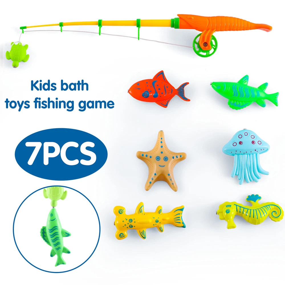 Kids Bath Toys Retractable Pole For Kids Toddlers Bathing 1/2/3 Year Magnetic FEATURES: FISH GAME - Designed for kids & kids or parent & kids interaction and competition. EDUCATIONAL GIFT - The colorful sea animals let Baby learn color perception during the fishing &bath,Help kids understand knowledge of physical buoyancy, develop their hand-eye coordination, motor skill. SAFE MATERIAL - This fishing toy is make by environmental friendly material, non-toxic ,odorless, safety, durable, And without color fading. High quality plastic, not easy to break, not easy to deform, stand up to repeated falls, long service life. SMOOTH EDGES - Fishing toys in the manufacturing process, using precision molds and injection molding process, to ensure that the molding of the edges of the flat, smooth, can avoid scratching children. REALISTIC SHAPE - Fishing toys are brightly colored and realistically shaped, which helps to stimulate children's curiosity and desire to explore and enhance their hands-on ability. STRONG SUCTION MAGNET - Fishing toys are equipped with turtle shaped magnets that are large in size and heavy in weight for easy catching of fish. TELESCOPIC ROD - The best rod model with durable plastic and anti-corrosion strong magnets selected. Can be adjusted the length of the pole. Perfect match with water table and kiddie pool summer aquatic party favors! PRODUCT PARAMETER Material: Plastic Color: Colorful Length: 40cm/15.75in PRODUCTS INCLUDED 1x Fishing Rod 1x Magnet 6x Marine Life Payment Delivery details Terms of sales About us Contact us Payment Payments: Paypal, Google Pay, Visa, Master Card, Amerian Express, Discover. Delivery details All items are shipped from US warehouse located at NJ . We ship to your eBay or Paypal address. Please make sure your eBay or Paypal address is correct before you pay. Terms of sales Free return About us Pls contact our customer service firstly if have any problems , we will help to solve the issue, and could offer free return service for full refund or free replacement after confirming. You can buy from us with confidence Contact us If have any problems, please feel free to contact us.