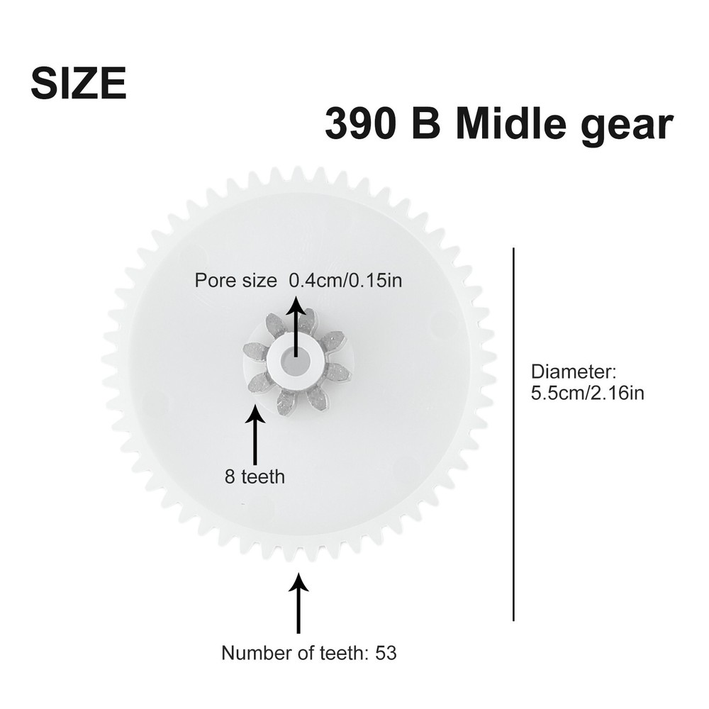 Gear Toy Car Children\'s Electric Car Drives For Gearbox Gear Plastic Acessories DESCRIPTION Product Description: brand new high quality Made of high quality material, Plastic gears for kids electric rc car 550 and 390 gearbox ride toy car Children's electric car large, medium and small gear motorcycle 390/550 motor motor gearbox gear stroller accessories Type: Children's electric car gear Dimensions: as picture shown Model:(optional) 550 5P set 550 5P large gear 550 5P middle gear 550 5P small gear 390 gear A set 390 A large gear 390 A middle gear 390 A small gear 390 gear B set 390 B large gear 390 B middle gear 390 B small gear 550 gear A set 550 A large gear 550 A middle gear 550 A small gear 550 gear B set 550 B large gear, 550 B middle gear 550 B small gear Package includes:(optional) Listing 1: 1* set of gears Listing 2: 1* gear Note: 1.The real color of the item may be slightly different from the pictures shown on website caused by many factors such as brightness of your monitor and light brightness. 2.Please allow slight manual measurement deviation for the data. POLICES Shipping Payment WARRANTY We only ship to confirmed ebay Order addresses. Please comfirm that your Order address is in line with your shipping address. Please kindly note that the c ombined shipping is not provided because the shipping fee is calculated by weight. Also, the each additional item means exactly the the same color and size. It takes about 7 -15 working days to US; about 10-30 working days to other countries. Transit time may be a little delayed because of the bad weather and customs inspection . If you do not receive your item within 30 working days since payment finished, please contact us immediately for further assistance. Payment must be completed within 5 days. If you have any problems about payment, please contact us via ebay message. We strive for 100% customer satisfaction! Positive Feedback is very important to us. If you have any questions, p lease feel free to contact us via "Ask seller a question" . We will reply your email within 24 working hours.