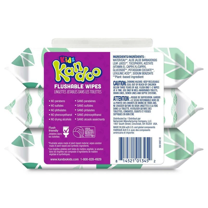You may also like Carpet Cleaner Everyday Solution 128 oz 2X Concentrated Fresh Scent Stains Dirt 33.78 USD 35.56 USD Free shipping 5% off Advanced Pro Max Clean + Protect Deep Cleaning Carpet Formula, 50 oz., 70E1 27.77 USD 29.23 USD Free shipping 5% off Dishwasher Cleaner Citric Acid Deodorizes Removes Build-up Plant-Based 4 Pouches 14.17 USD 14.92 USD Free shipping 5% off Streak Free Window Cleaner Ammonia Free Glass Clean 16oz Anti-Static Formula New 17.78 USD 18.72 USD Free shipping 5% off Professional Strength Drain Clog Remover Gel Safe All Pipes Fast Acting 42 oz US 12.21 USD 12.85 USD Free shipping 5% off Drain Clog Remover Gel Professional Strength Instant Clog Solution 80 Fl Oz New 10.51 USD 11.06 USD Free shipping 5% off Powerful Carpet Cleaner Solution 50oz Deep Clean Stain Remover Fresh Scent New 30.81 USD 32.43 USD Free shipping 5% off Kandoo Kids Flushable Wipes make potty training and cleaning easier. They are hypoallergenic and moistened with lotion to ensure they help clean better than toilet paper. These fragrance-free wipes work great on sensitive skin and their small case is perfect for on the go potty training. Before your next accident be sure to pick up this value pack to save your wallet and time. Kandoo Flushable Cleansing Wipes are moistened with lotion, so they're soft and gentle Fragrance free Hypoallergenic No parabens, sulfates, phthalates, phenoxyethanol, or drying alcohols Soft tub case is great for travel and potty training on the go Flush only one or two wipes at a time Use only in well-maintained toilets, drain lines, sewer lines, and septic systems Packaging May Vary Foldable Weight Bench Press Home Gym Incline Decline Sit-up Bench Assemble-Free 74.09 USD 77.99 USD Free shipping 5% off 28" Firewood Split Wood Load Heavy Pick Tool Rounds Sturdy Lift Drag Lightweight 51.21 USD 53.91 USD Free shipping 5% off Penny Candy Glass Jar with Lid Cookie Jar 1 Gallon Food Storage Jar for Snacks 13.03 USD 13.72 USD Free shipping 5% off 35"Octagonal Fire Pit Outdoor Fire Pit Wood Burning Firepit Bonfire Backyard US 103.73 USD 109.19 USD Free shipping 5% off Sunflower Coarse Kernels Hearts No Waste No Mess Bird Seed 50 Pounds 111.14 USD 116.99 USD Free shipping 5% off 8 Ounce Ball Peen Hammer Wood Handle Automotive Tool Drop Forged Steel New 9.82 USD 10.34 USD Free shipping 5% off 12 in Aluminum Nonstick Fry Pan Soft-Touch Handle Perfect Sauteing Cooking New 25.64 USD 26.99 USD Free shipping 5% off A23 High Output 4060 Lumen Super Bright LED Light Bulb 30W Warm White E26 Base 10.5 USD 11.05 USD Free shipping 5% off Ergonomic Gaming Chair Office Computer Executive Chair Leather Desk Chair Blue 126.2 USD Free shipping Wooden Gun Rack Display with Holder Floor Standing Indoor Rack Storage Garage 95.63 USD 100.66 USD Free shipping 5% off 9.5 Inch Tempered Glass Pie Plate Fluted Edge Oven Safe Baking Dish Decor US 10.39 USD 10.94 USD Free shipping 5% off 2 lb Dead Blow Hammer Non-Marring Soft Face Steel Shot Handle DIY Tool New 15.24 USD 16.04 USD Free shipping 5% off