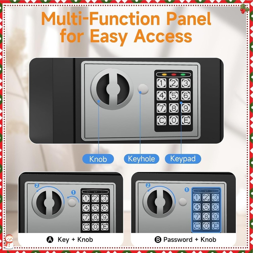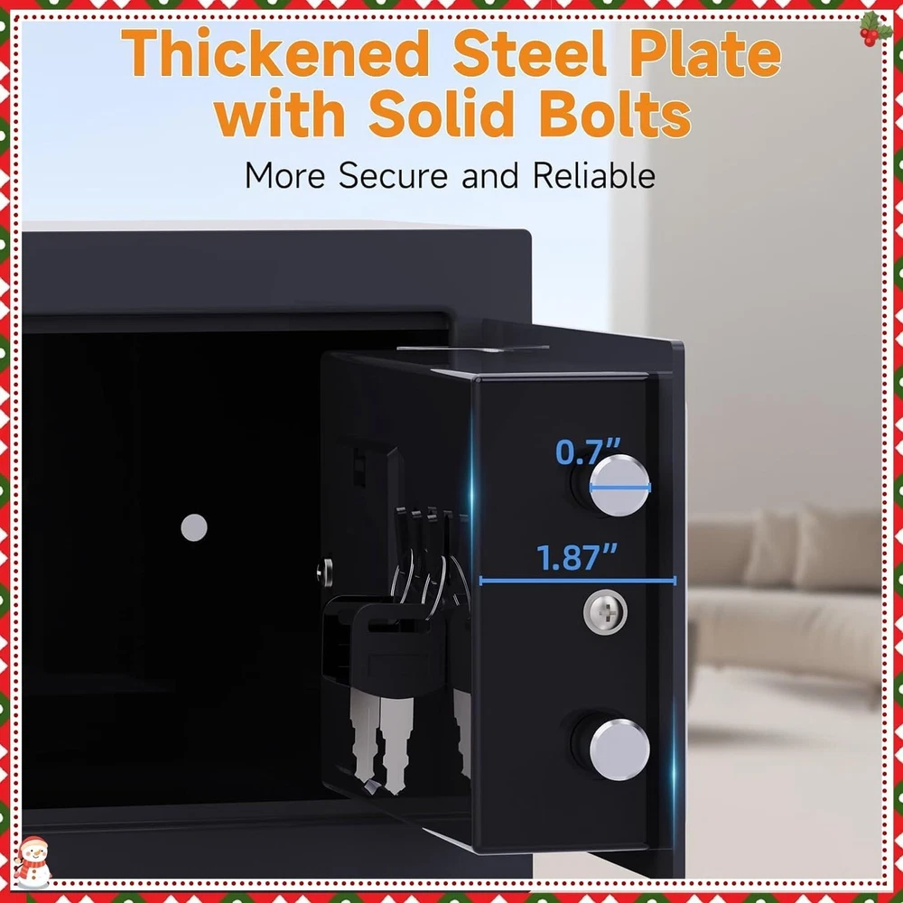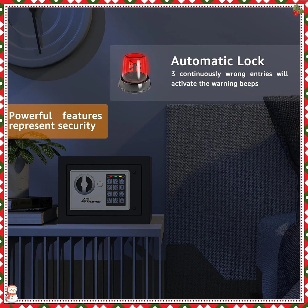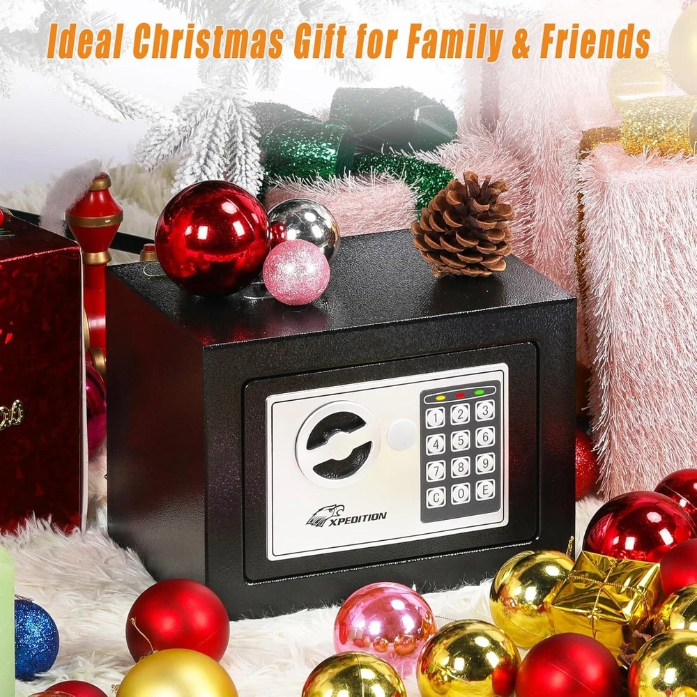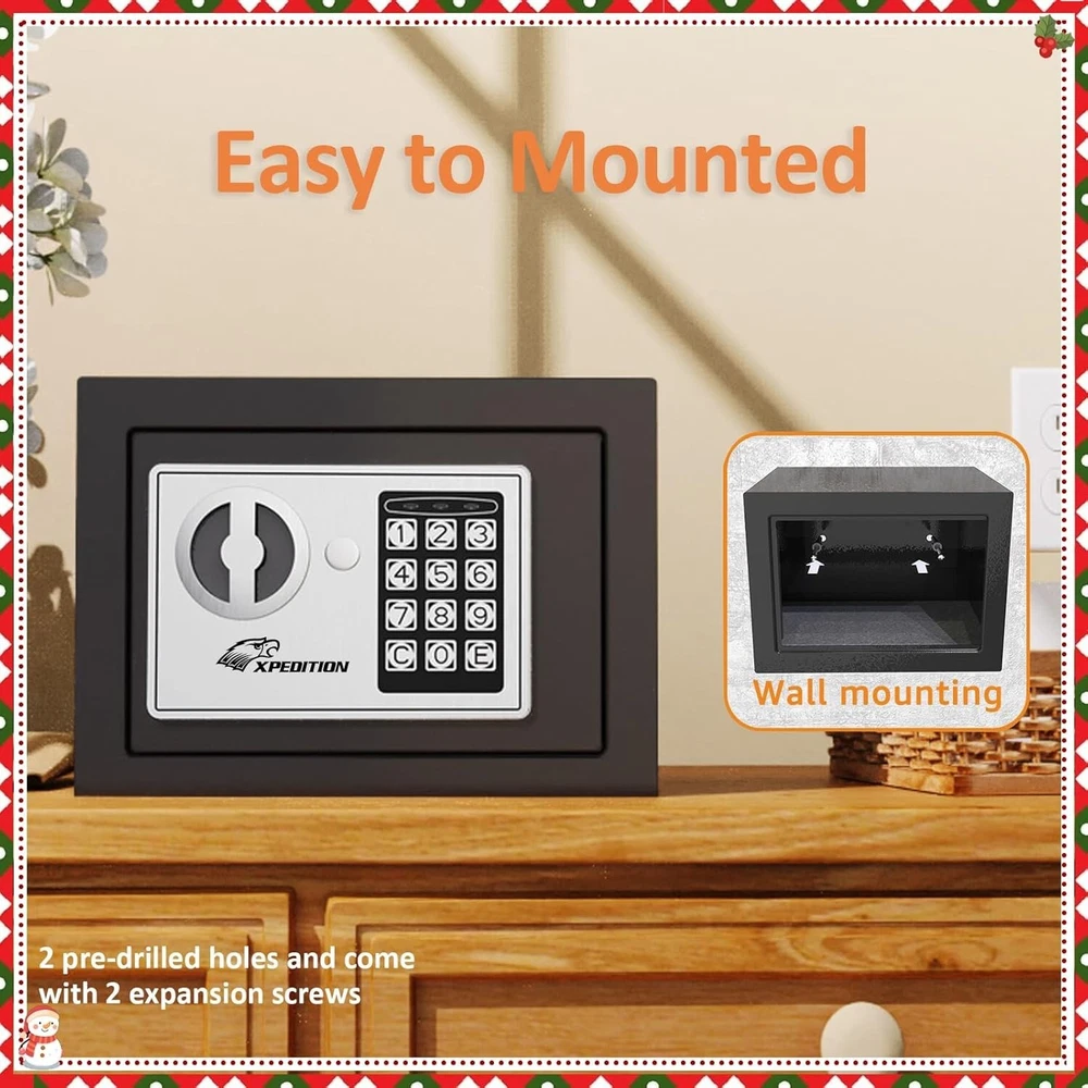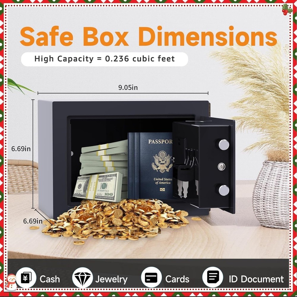 This mini safe is perfect for keeping kids' valuables secure! The dual-lock system (key + passcode) makes it super convenient, and the alarm adds extra peace of mind. Compact yet sturdy, it fits discreetly anywhere—under a bed, shelf, or even bolted to a wall. The auto-lock feature ensures it’s always secure. Great for cash, toys, or keepsakes! No more worries about curious little hands. Highly recommend!