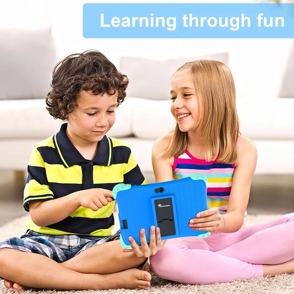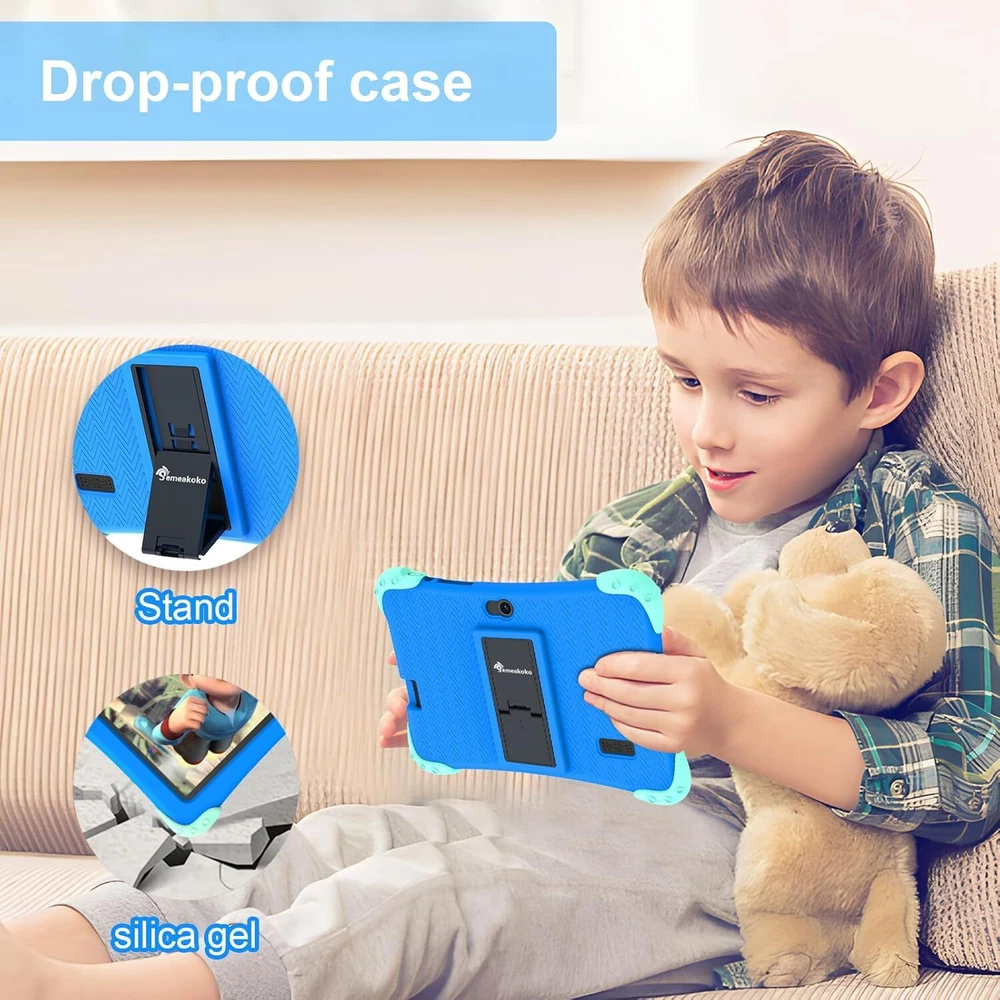 Kids Tablet 7 inch Android 12 Toddler Childrens for Blue Product Details Standing screen display size: 7 Inches Screen Resolution: 1024x600 Max Screen Resolution: 1024 x 600 Pixels Processor: 1.6 GHz RAM: 2 GB Hard Drive: 32 GB Chipset Brand: Allwinner Card Description: Integrated Wireless Type: 802.11n, 802.11b, 802.11g Average Battery Life (in hours): 5 Hours Brand: Semeakoko Model Name: Touch Memory Storage Capacity: 32 GB Screen Size: 7 Inches Display Resolution Maximum: 1024 x 600 Pixels ✨【Quad-core & Android 12 GMS Certified】All our tablets are google GMS certified so that you can download brilliant apps from google store. And our Android 11 OS tablet is powerful, which has a built-in high-performance quad-core processor, 1024x600 IPS HD display, wifi, Bluetooth, dual camera, HD touch screen, 2GB RAM and 32GB ROM. In addition you can also expand the space up to 128GB through the SD card to store photos, music, videos and learning materials, etc. ✨【Good Partner for Children's Learning & Games】Semeakoko kids tablet comes with a safe and funny iWawa kid's software. And there are many free pre-installed apps for kids learning and playing. In our kids store, you also can download different apps from the google play store as your kids age. 3000mAh large capacity battery ensures 5-hour continuous use on a single charge. Dual cameras are perfect for video chat and capturing happy memories. ✨【Parent Control Mode】7 inch tablet for kids offer a nice parental control mode that make parents easy to personalize tablet’s screen time, set educational goals, filter age-appropriate content, and also expand the kid-appropriate web, download new apps and manage play time as your child grows. Perfect for parents to create a free and safe entertainment environment to their kids, help them explore a new world. ✨【Upgraded Kid-Proof Case】To make it more suitable for children, we upgrade the silicone tablet case, effectively prevent tablet from accidental drops and collision damage. And there is a retractable stand on the back of the toddler tablet, which is convenient for you to adjust the viewing angle of the tablet. 【Best Gift for Kids】Our android tablet is designed for children, aim to develop children’s brain, improve cognitive ability, strength their learning ability. Let your children get more fun in the learning. A very good gift for your children. Besides, we offer you a satisfied 30 days free return and refund, and provide lifetime technical service support.