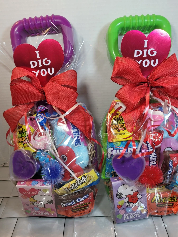 The gisnt Valentine's shovel is designed for kids, suitable for both boys and girls. It contains items appropriate for Valentine's Day with various types of candy. It is a thoughtful gift idea for kids to celebrate love and friendship during Valentine's Day.