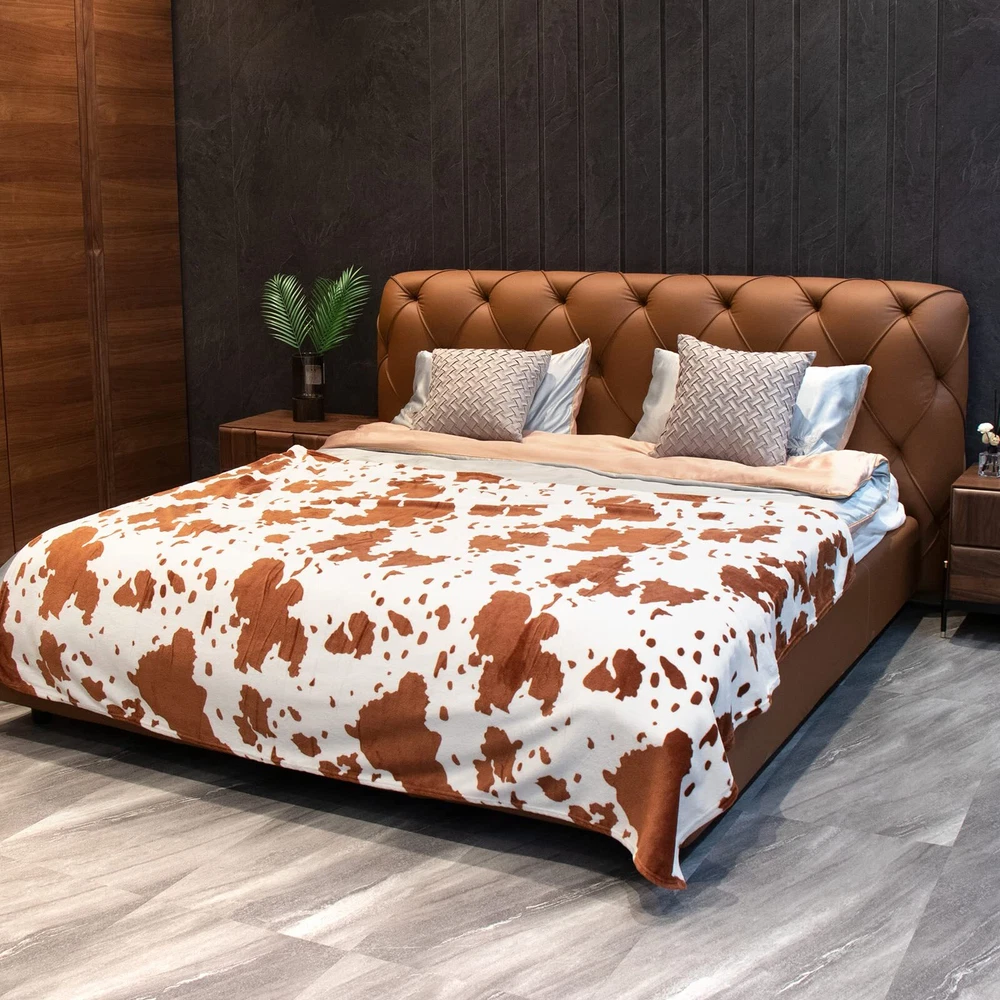 King Size Blanket Brown Bed Throw Blanket Soft Lightweight King Blankets 90x108inch Plush Cozy Fuzzy Fleece Blanket Home Decor for Bedroom TRUSTED BRAND- Please clean the cow print blanket in the washing machine and dryer clean the cow fleece blanket separately.(Machine wash - gentle cycle. Tumble dry - low heat). SOFT WARM- Adopting a new generation print and dyeing, it does not fade and does not lint. This is a very elaborate craft blanket, the cow print blanket has a comfortable quality fabric. The flannel double-sided cow blanket is made of microfiber, lightweight, soft, and warm enough to be comfortable for children, babies, and family members. VERSATILE COW BLANKET- Small Size(40"x50"): suitable as a Baby blanket for children's naps and as a swaddling blanket for babies. Throw Size("50x60"): lightweight and easy to carry, suitable as an outdoor blanket, couch blanket, and travel blanket. Twin Size(60"x80"), Queen Size(90"x90"), King Size(90"x108"): will be more suitable to use on bed and couch. Good for relaxing at home, while reading, watching TV, using your tablets, outdoor sporting events, and concerts. Suitable For All seasons- Our cow print design blankets are both warming and breathable. They will warm you up in winter and chilly summer nights. Hence, they are perfect for year-round comfort! Good choice for gifting for People of all ages. Fits into any room in the house - bedroom, guest room, kid’s room, vacation home, living room or take it along for RV trips. GIFTS FOR ALL AGES- This cow blanket is an ideal gifts for cow lovers. The cute cow style can match your bedroom, and livingroom well. The good gifts for the holidays, Birthday, and special occasions. Could be offering as bed blanket, shawl blanket, air-conditional blanket, nap blanket, kids blanket, travel blanket, camping blanket, picnic blanket, swaddle blanket, play mat, or pet blankets. So it's great gifts for mom, father, friends, girls, boys, kids, teens, boyfriend, girlfriend,pets, ect.