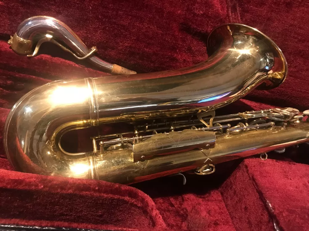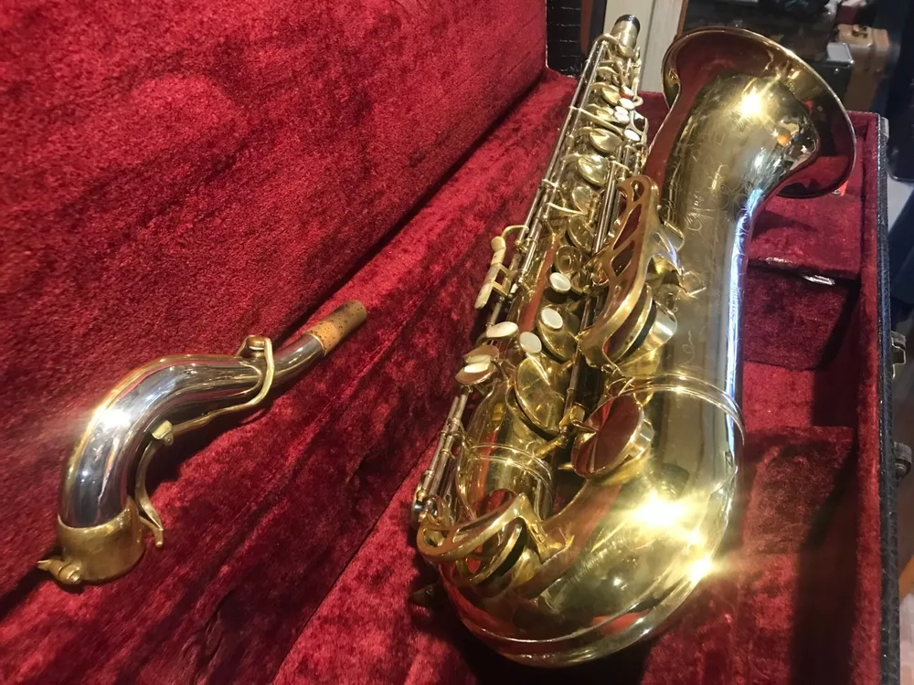 Great horn in very good condition with very light signs of wear. Hard to see but maybe a tiny ding here and there not substantial enough to plainly see in pix. Has no lacquer shine just the quality brass metal of the body. All the keys and pearls are in tacked and the horn looks great. If you need more info feel free to contact me and I will do my best to provide it. This sax is modestly priced and all reasonable serious offers will be considered. Thank you.