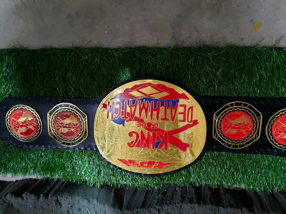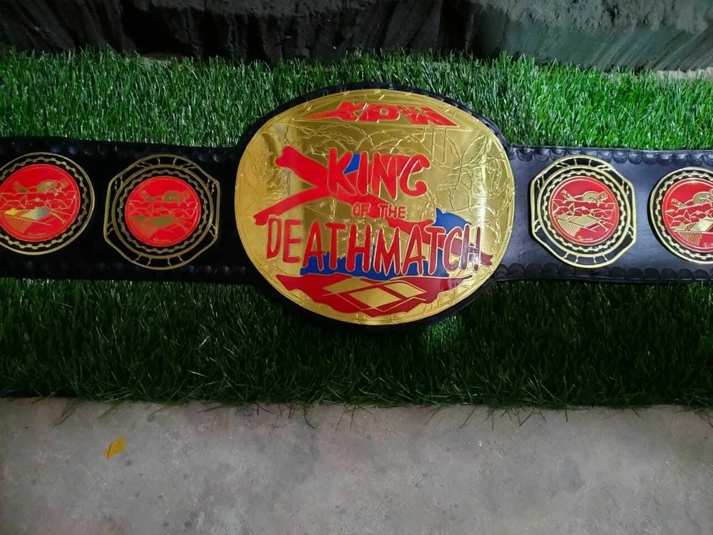 Welcome to our shop ------------------------------------------- We are specialist in manufacturing handmade products:: Our wide range of products include: >>>>Championship Belts WWE | WWF | AEW | UFC | WBC | WCW Product Description *** King of the Death Match Championship Wrestling Brass 2mm Belt *** Plate Metal: Brass (Zinc available on request with additional cost) Strap: 100% Leather Largest Waist Size: Fits upto 46'' Belt Length: ~50" Weight: 6.17 lbs | 2.81 Kg Plate Thickness: 2mm (4mm Version available on demand with additional cost) ::The belt is well crafted and manufactured to meet the quality demands of fans:: Get your hands on this marvelous piece now! Note: If you need further details kindly inbox us, we will try to be as responsive as possible. ------------------------------------------- Return Policy: Generally we don't have much complains on our products and we make sure to 100% satisfy our clients. We send the product in well Bubble Wrapped packaging so there is highly unlike chance of getting damaged item. In case there is a damage, we will try to give partial refund or you can ask for full refund within 30 days after returning the belt to origin. NOTE: 1. If you have placed the order by mistake or you have purchased a wrong item then we are not going to refund that. 2. Buyer will pay the shipping fee of returning the belt. ------------------------------------------- Happy Shopping! :)