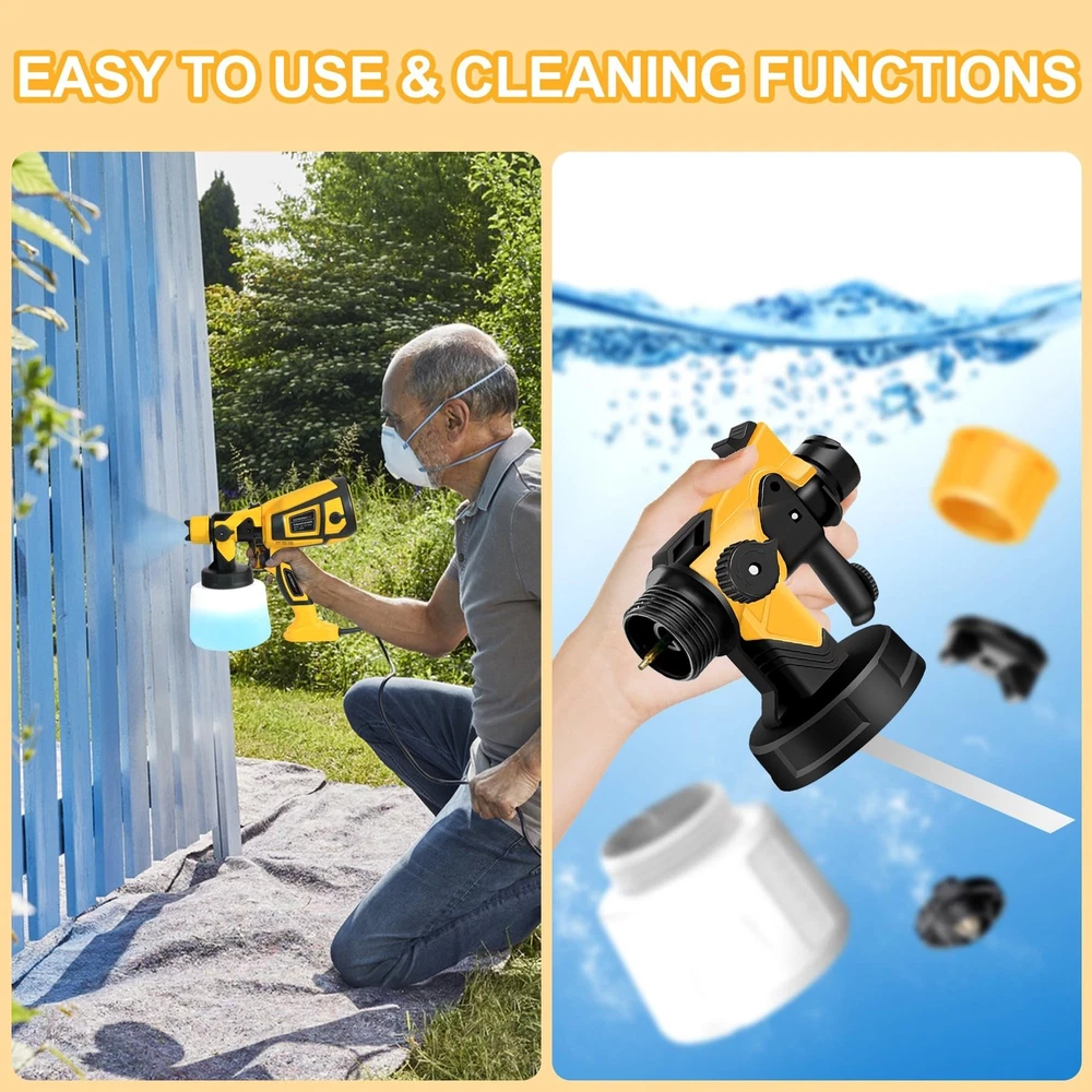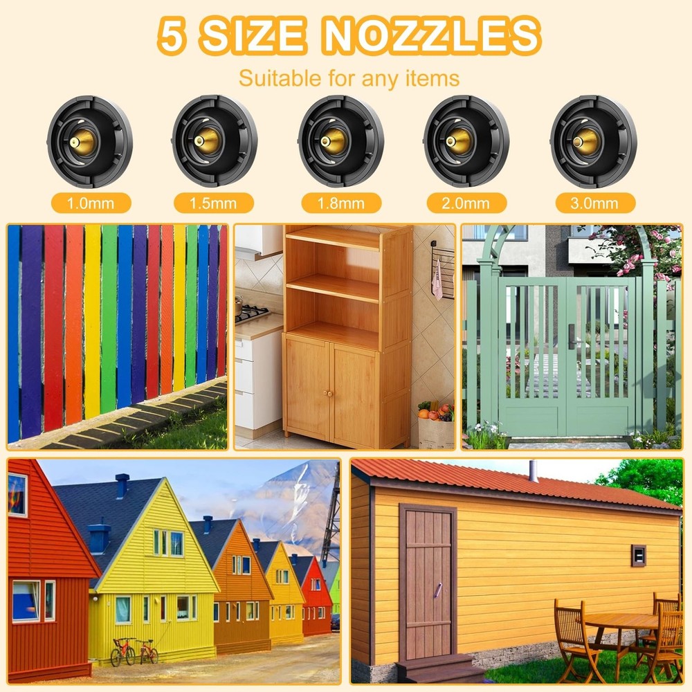 KingSom Paint Sprayer,800W HVLP High Power Electric Spray Paint Gun,1400ml High Capacity Container Spray Gun,Adjustable Spray Knob,5 Nozzles & 3 Patterns,Easy to Clean Paint Sprayer for House Painting - Buy Now with Fast Shipping! KingSom Paint Sprayer,800W HVLP High Power Electric Spray Paint Gun,1400ml High Capacity Container Spray Gun,Adjustable Spray Knob,5 Nozzles & 3 Patterns,Easy to Clean Paint Sprayer for House Painting Product Details Brand: KingSom Tank Volume: 1.4E+3 Cubic Centimeters Color: yellow Recommended Uses For Product: Painting Material: Plastic Brand: KingSom Tank Volume: 1.4E+3 Cubic Centimeters Color: yellow Recommended Uses For Product: Painting Material: Plastic Product Dimensions: 3"W x 2"H Style: Handheld Power Source: ac Included Components: Instruction Guide, Gun Lubricant, Measuring Cap, Nozzle, Viscosity Cup, Nozzle Adapter, Strainer, Replacement Seal, Cleaning Kit Model Name: KS-gun Item Weight: 3.83 pounds Manufacturer: Kingsom Country of Origin: China Item model number: KS-gun Key Features ✅ High Power Electric Spray Paint Gun: KingSom paint sprayer gun, operating at 800W with 1400ml large capacity container,boosts painting efficiency. Our paint sprayers are better for your DIY work, ideal for home renovations, yard landscaping, and small furniture upgrades. ✅ 5 Nozzles & 3 Spray Patterns:KingSom paint sprayer gun for house painting equipped with 5 size nozzles (1mm,1.5mm,1.8mm,2.0mm,3mm),perfect for house painting like furniture, fences, walls, doors, garden tables and chairs... The spray paint gun can be adjusted to 3 different spray patterns: horizontal, vertical and circular, making it suitable for a wide range of application scenarios to meet your different needs. ✅ Adjustable Flow Control:KingSom design this 800W HVLP spray gun with two knobs,you can control the amount of paint output by adjusting one of the flow control knobs. According to your different spraying effect requirements, reasonable control the paint flow to achieve better spraying effect and avoid paint waste. ✅ Upgraded Motor: KingSom's electric spray paint machine prioritizes your safety, providing peace of mind while you work. Equipped with upgraded motor,which features temperature protection. Adopt brass nozzle rather than other plastic nozzle,offering durability and easy cleaning,not easily clogged. And the gun body has double-layer insulation to ensure your safety during use. ✅ Easy to Use & Clean:The electric paint sprayer gun can be easily assembled with no tools, even if you are a beginner, you can easily get started. It is very important to clean the paint sprayer thoroughly after use,simply dismantle the motor part and clean paint left in the nozzle part. Product Description
