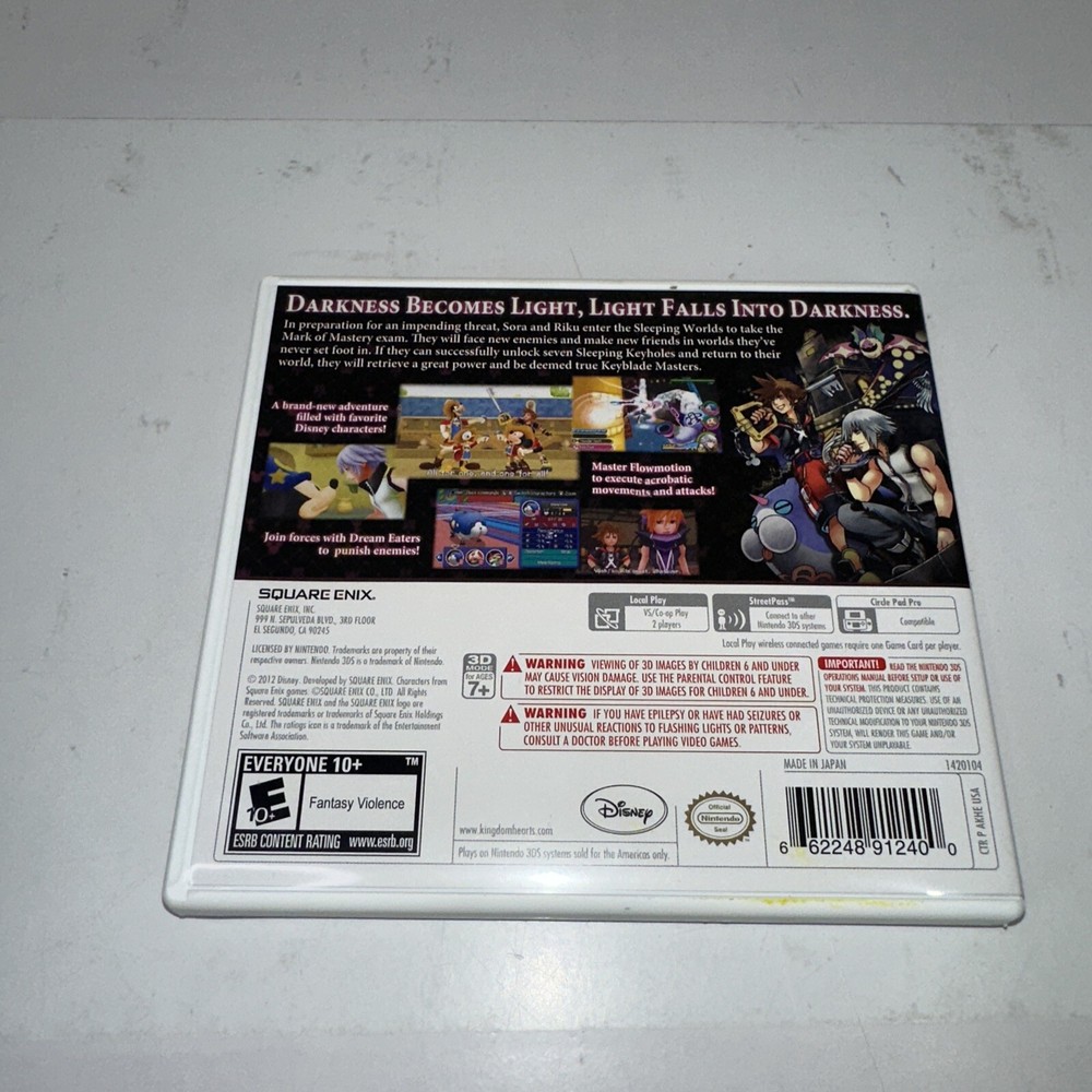 Embark on an adventure with "Kingdom Hearts 3D: Dream Drop Distance" for the Nintendo 3DS. Released in 2012 by Square Enix, this installment offers a captivating role-playing experience that fans of the series have come to love. Dive into a world filled with beloved Disney and FINAL FANTASY characters, delivering an imaginative tale that weaves both genres seamlessly. The game comes complete with its original manual, ensuring you have all the guidance needed to navigate through its rich storyline. Players will appreciate the inclusion of AR cards, enhancing the interactive experience. Rated E10+ for Everyone 10 and older, this title promises to be an enjoyable journey for younger players and collectors alike, supporting the NTSC-U/C region code for the US and Canada.