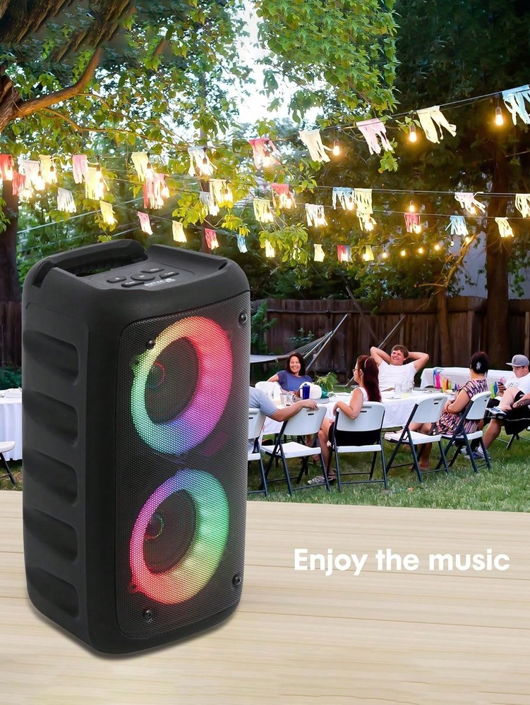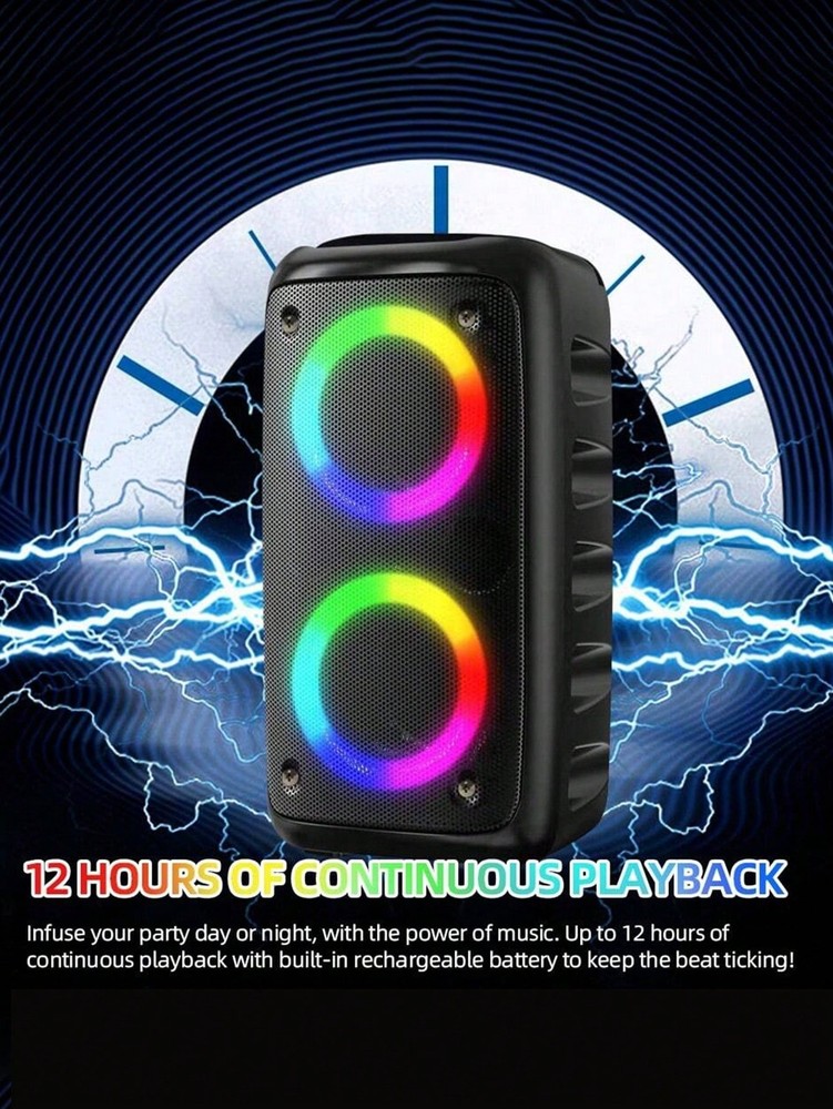 [Loud Bluetooth Speakers]The kinglucky Bluetooth Speakers is big powerful portable ABS speaker, it have 2 loud speakers ,can provide very heavy bass and amazing surround stereo sound. This Portable bluetooth speaker with subwoofer is very suitable for outdoor and indoor home party. it will bring you an unprecedented listening experience [Wireless and wired Connect]The kinglucky portable Speakers built-in advanced Bluetooth 5.0 wireless transmission, working distance up to 32ft range, easily connectable all Bluetooth-enabled device, such as you cellphone, tablet, laptop, and all other bluetooth devices. The speaker also can support wired connect to play. you can use AUX cable connect to your TV, computer, MP3, MP4, or other non-Bluetooth devices via 3.5mm audio jack. [Bluetooth speaker with lights] The kinglucky party speaker is designed with multiple dynamic light modes to light up every corner of the party space, and Colorful LED lights can change the lighting effect according to the rhythm of music, which colourful and vibrant can give your home party, beach, camping or outdoor travel an exciting atmospher. [Multi-function Party Speaker] The kinglucky portable bluetooth speaker support TWS, FM radio, TF Card music playback, AUX input, U-disk music playback, remote control and 6.35MM Microphone jack. It's built-in 2400mAh rechargeable battery, providing up to 3~5 hours play time ( depends on playing volume). You can enjoy the carnival whether it is an indoor or outdoor dance party. This big bluetooth speaker is great for camping trips, barbecues and even singing karaoke, weddings, conferences etc. [FM Radiol] The wireless speaker support FM radio Function, it can automatically search and save all available stations by long press pause button in FM mode . The top of this portable bluetooth speaker has a hand-held pull ring that you can take the speaker anywhere and a stand holder that can support the standing of mobile phones, tablets, etc. [TWS Features]The kinglucky bass speaker supports True Wireless Stereo (TWS) technology, you can pair two of our 3317 Bluetooth speakers together get powerful loud surround stereo sound for your party. [TWS Features]The kinglucky bass speaker supports True Wireless Stereo (TWS) technology, you can pair two of our 3317 Bluetooth speakers together get powerful loud surround stereo sound for your party. [Ideal as a holiday gift]Our kinglucky bluetooth speaker is a great gift for people of all ages, Whether they enjoy music, parties, or just want to enjoy high-quality music at home. This is a multifunctional and practical gift that anyone will love it. Ideal as a birthday gift, Christmas gift, and holiday gift.