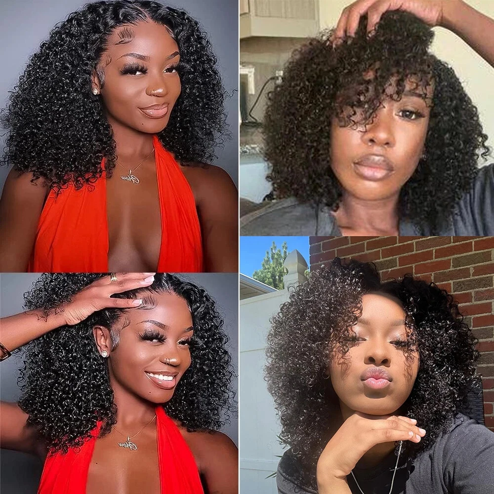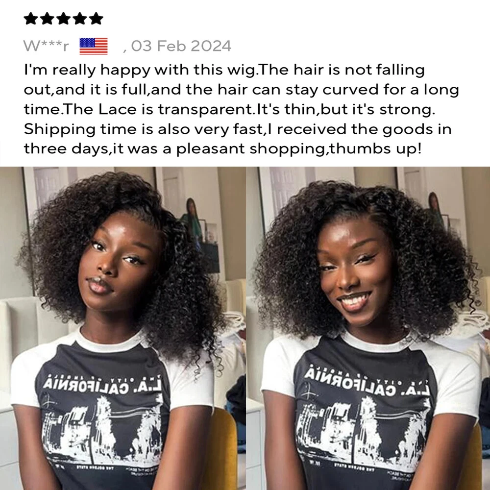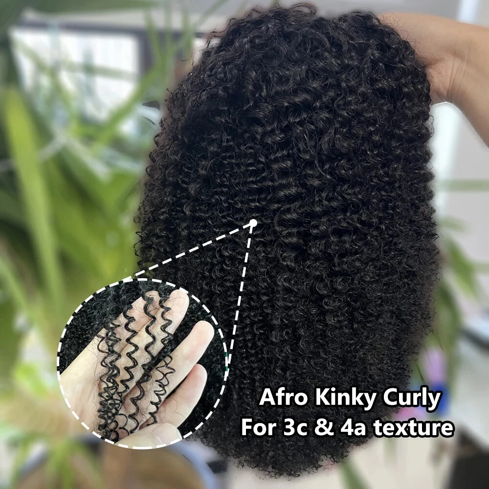 300% Kinky Curly Transparent Lace Wig Pre Plucked Glueless Human Hair