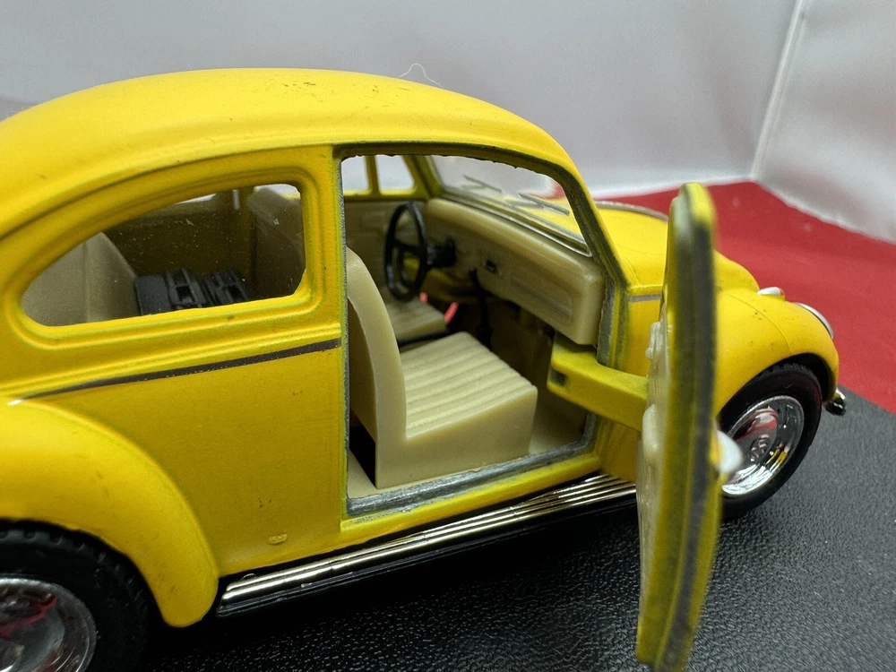 This Kinsmart 1967 Volkswagen Classic Beetle is a must-have for any diecast car collector. The 1:32 scale model is beautifully crafted with intricate details and a vibrant yellow color. The pull-back design adds an extra touch of authenticity to this classic car. The vehicle make and model are apparent from a distance, making it a great addition to any display case. The diecast material ensures durability, and the year of manufacture is 1967. This Volkswagen Beetle is a perfect addition to any collection, and it's sure to impress.