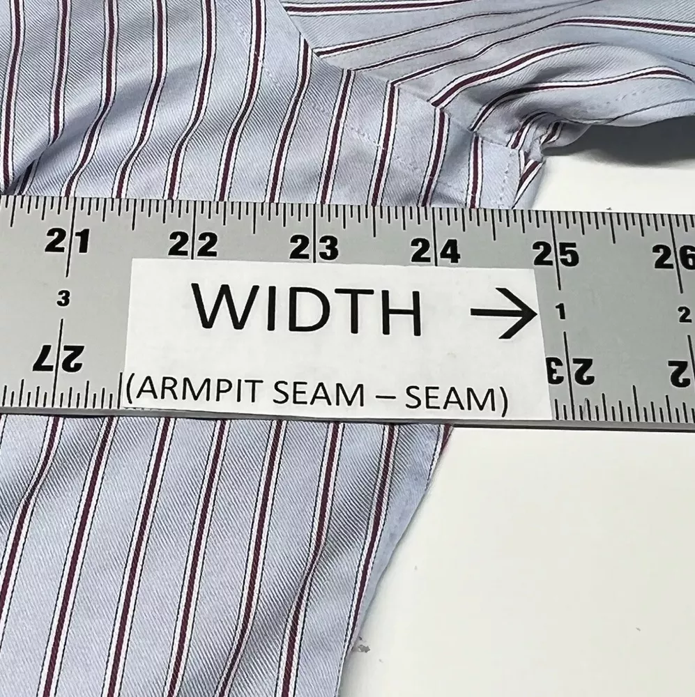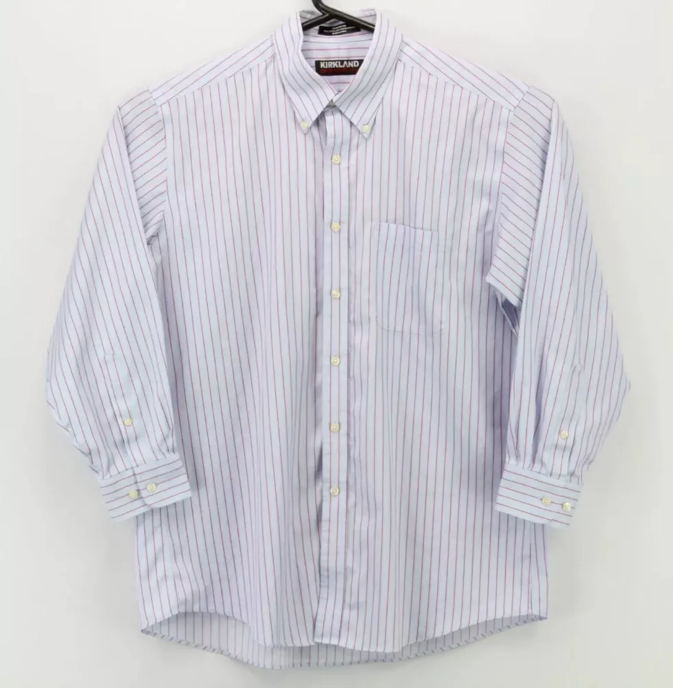 Kirkland Signature Mens Button Down LS Shirt Size 16.5 32 Multicolor Striped. #2503 In very good condition Deals: Please send us a message for deep discounts on purchases of multiple items! (More Detailed Information About This Item Can Be Found In The Item Specifics Section) Measurements (Please see photos for measurements). We include photographs of the following measurements for tops: - Rear Length: Rear, center top of collar to bottom - Width: Armpit seam-to-seam, taken from rear side Wondering if our item will be a good fit? We recommend measuring a similar item in your wardrobe and comparing those measurements to ours. (Please keep in mind that our measurements may differ slightly from your own)