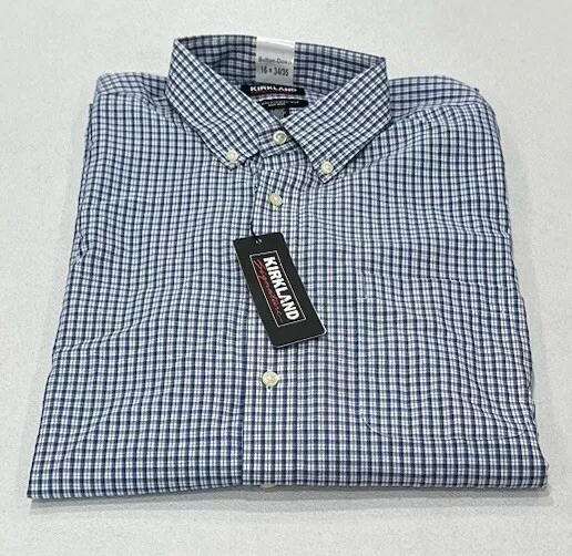 Kirkland Signature Men's Traditional Fit Dress Shirt Size: 16-34/35 Color: Blue Plaid Content: 100% Cotton