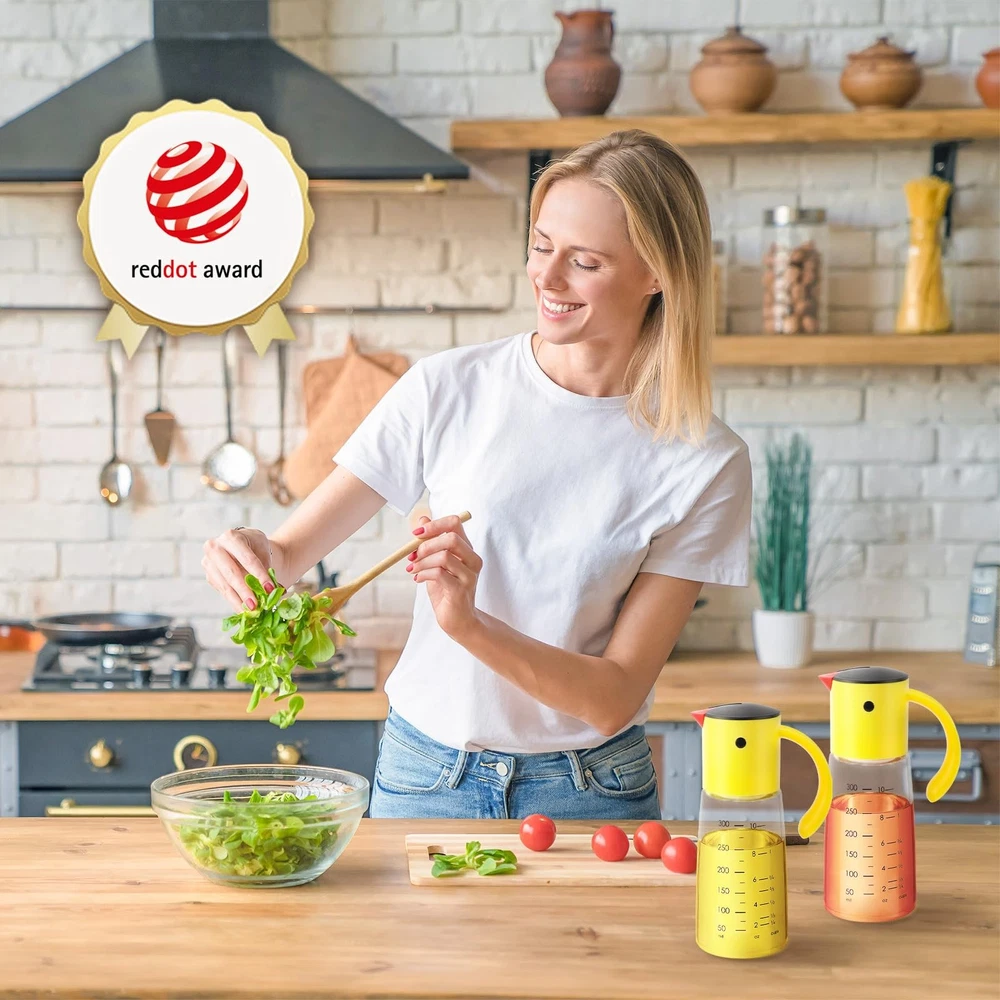 Oil Dispenser Bottle with Drip-Free Spout & Measuring Scale for Kitchen