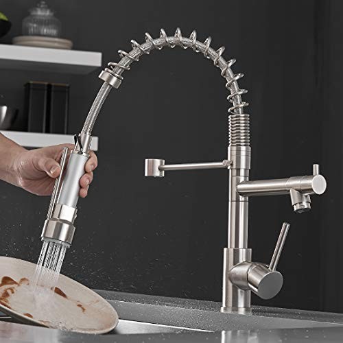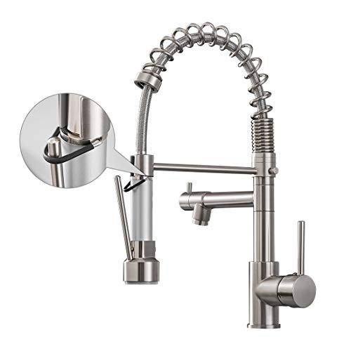Return Policy Fast Delivery Trusted seller Kitchen Faucet with Pull Down Sprayer,Commercial Single Handle High Arc Stainless Steel Brushed Nickel Kitchen Sink Faucet Product Description HEAVY DUTY DESIGN: Our Stainless Steel pull down kitchen faucet features an all-metal body and handle, rust-resistant finishing,high standard durability, multiple and repeated test for structure and appearance before manufacturing ensure super stability. Practical Design:The ingenuity and convenience of the sprayer lock design allows the you to utilize one hand rinsing while when you wash. can insure constantly water coming out so that you can clean things conveniently with your two hands, which means that you do not need to use one hand to keep the sprayer opening like other spring faucets EASY TO CLEAN:The surface of the Stainless steel kitchen faucets brushed nickel finish resists corrosion, fingerprints and water spots,clean faucet by cloth is enough in daily use. EASY USE:With a one-function kitchen faucet sprayer and a separate pot filler spout, this pull out faucet allows you to handle all types of tasks. The spray head and stream spout can swivel around 360 degrees easily clean all areas of your sink. If t is any question, please feel free to email us via , we will answer you in 24 hours. Any issues of the faucet, please contact us! Shipping Returns Payment Shipping Shipping is FREE to all addresses other than APO/PO boxes in the lower 48 states. All our stock ships from US-based warehouses. Shipped via USPS or UPS (depending on location and package weight) Unless stated otherwise, all orders will ship within 24-72 hours of your payment being processed. Check our feedback to see the great reviews of FAST shipping we offer. Returns Seller does not accept returns Payment We currently accept payment via eBay managed payments only. Once payment is cleared, we will dispatch your shipment within 1-3 business days. Please refer to the "Shipping" tab for more information regarding shipping speed to your destination.