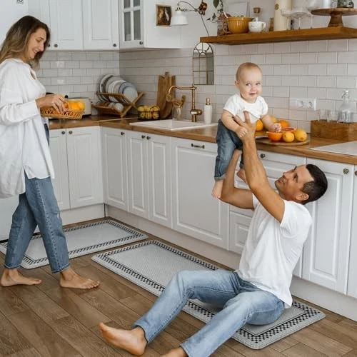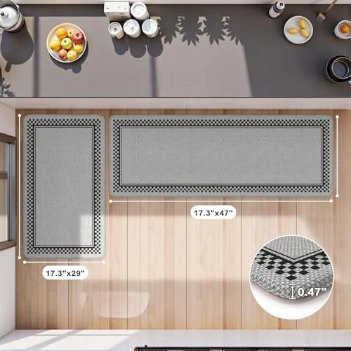 Menu 1. We require immediate payment. 2. We currently accept payment via eBay managed payments only. 3. Once payment is cleared, we will dispatch your shipment within 1-3 business days. Please refer to the "Shipping" tab for more information regarding shipping speed to your destination. Kitchen Floor Mats Cushioned Anti Fatigue,Kitchen Mats for Floor 2 Piece,Memory Foam Kitchen Rugs Non Slip,Farmhouse Kitchen Rugs for Laundry Bathroom Sink,Grey Product description Anti Fatigue & Comfort: The 0.47 inch (12 mm) thick kitchen anti fatigue mat is ergonomically engineered, helping reduce stress on your feet, joints and lower back, alleviating long-stand fatigue. Stands like walking on clouds, offering a cozy foot feel Non Slip & Safety: Our non skid kitchen mat is crafted with bevelled edge and rubber backing to prevent tripping or slipping and protect the elderly and children. The padded kitchen floor mats can be used on various surfaces(tiles, wood, marble, etc) Waterproof & Easy to Clean: The fatigue mats for kitchen floor is resistant to liquids, oils, and stains, just wipe with a damp cloth, sponges, sweep or vacuum, but not machine washable. High quality surface ensures durability and easy maintenance Versatility: In addition to being used as kitchen decor, it can also be used in diverse places such as laundry room, office, in front of sink, doorway, balcony, etc. The farmhouse kitchen mats for floor is a perfect gift for family and friends Perfect size & Safe material: The kitchen mat set contains 2 rectangular mats (44*75+44*120). Our kitchen rugs are made of premium PVC and thick foam that is latex-free and odor-free. High-quality materials are durable, even with heavy use PLEASE MESSAGE US IF YOU HAVE ANY OTHER QUESTIONS, AND MANY THANKS FOR READING ALL OF THIS. Copyright ©#. All Rights Reserved.