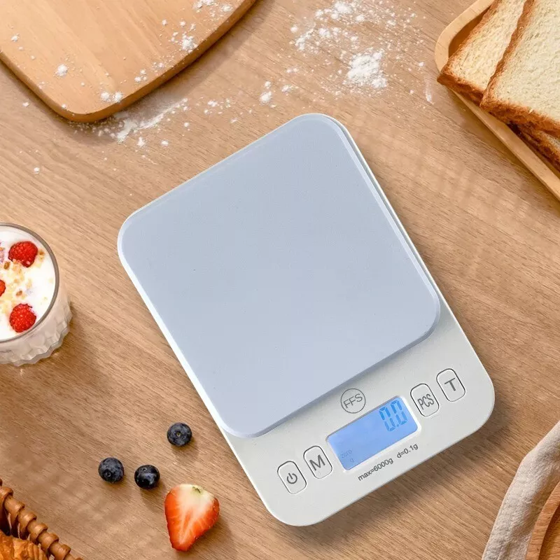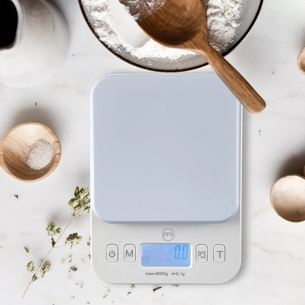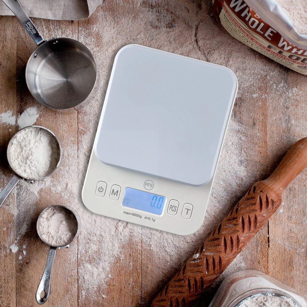 Digital Kitchen Scale, Light Weight High Precision Scale LCD Display, 13 lbs (6kg) Capacity, 0.01 oz.(0.1g), Units (G, lbs., Oz, fluid Oz, ML), Counting Function, Tare Weight Function. High Precision: High precision strain gauge system to measure from 0.1 g (0.01 oz) with toggle to gram, pounds / ounces. Can be used for variety of cooking, baking or other measurement where high precision is crucial. Attractive Design: The ABS plastic make it an attractive design to add to the kitchen. The scale is light weight and requires 2 AAA batteries to operate (included). Easy Operation: It is so easy to operate (on/off) or to switch between the units (g/oz/fl oz). Recommend to place the ingredient on a small container to keep the surface clean. Auto shut off feature. Long Lasting: Compact and with with Smooth Surface provide a durable and long life for the scale. It is easy to wipe clean the surface between uses for storing. Perfect Gift: It is a perfect gift for a romantic partner or newly married couple.
