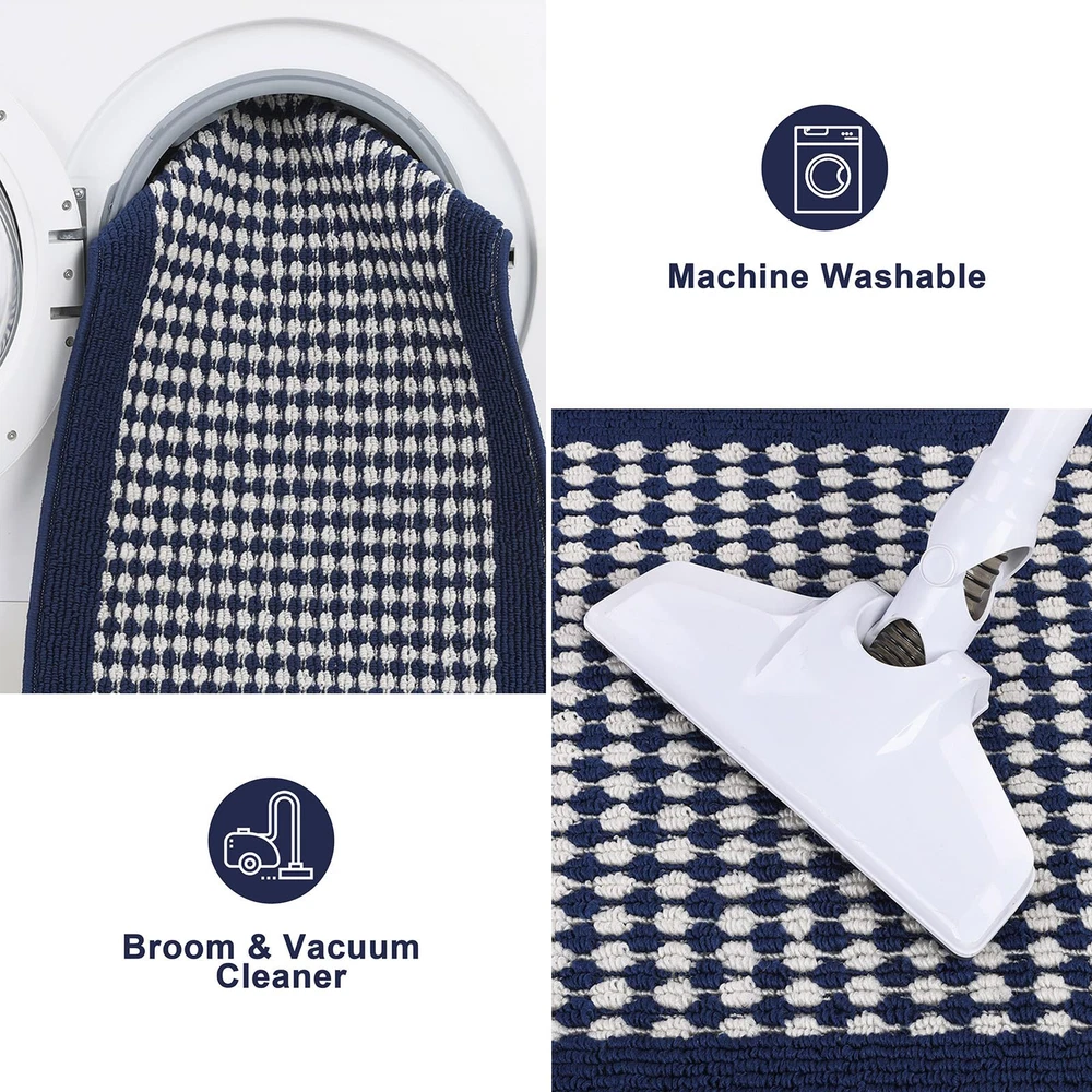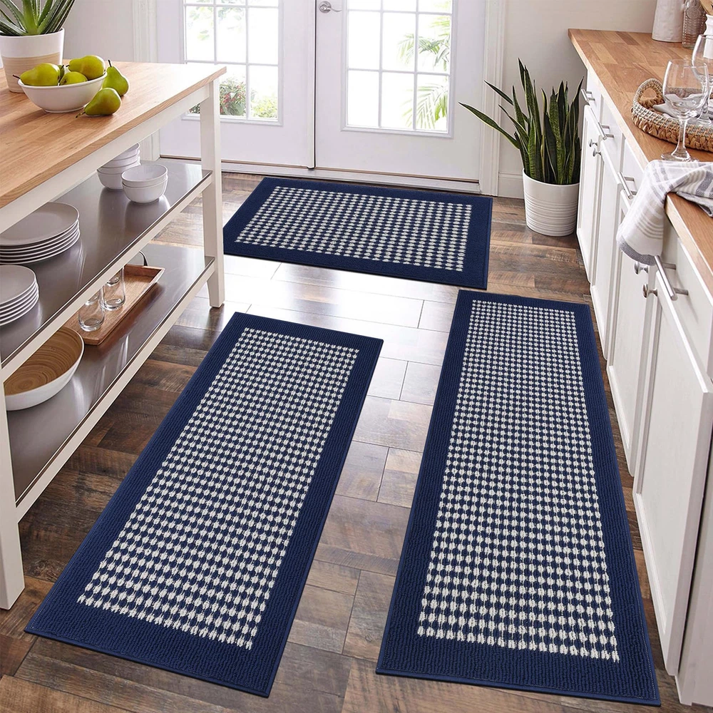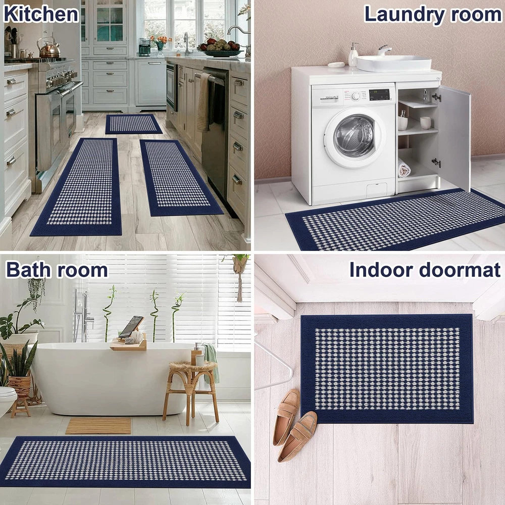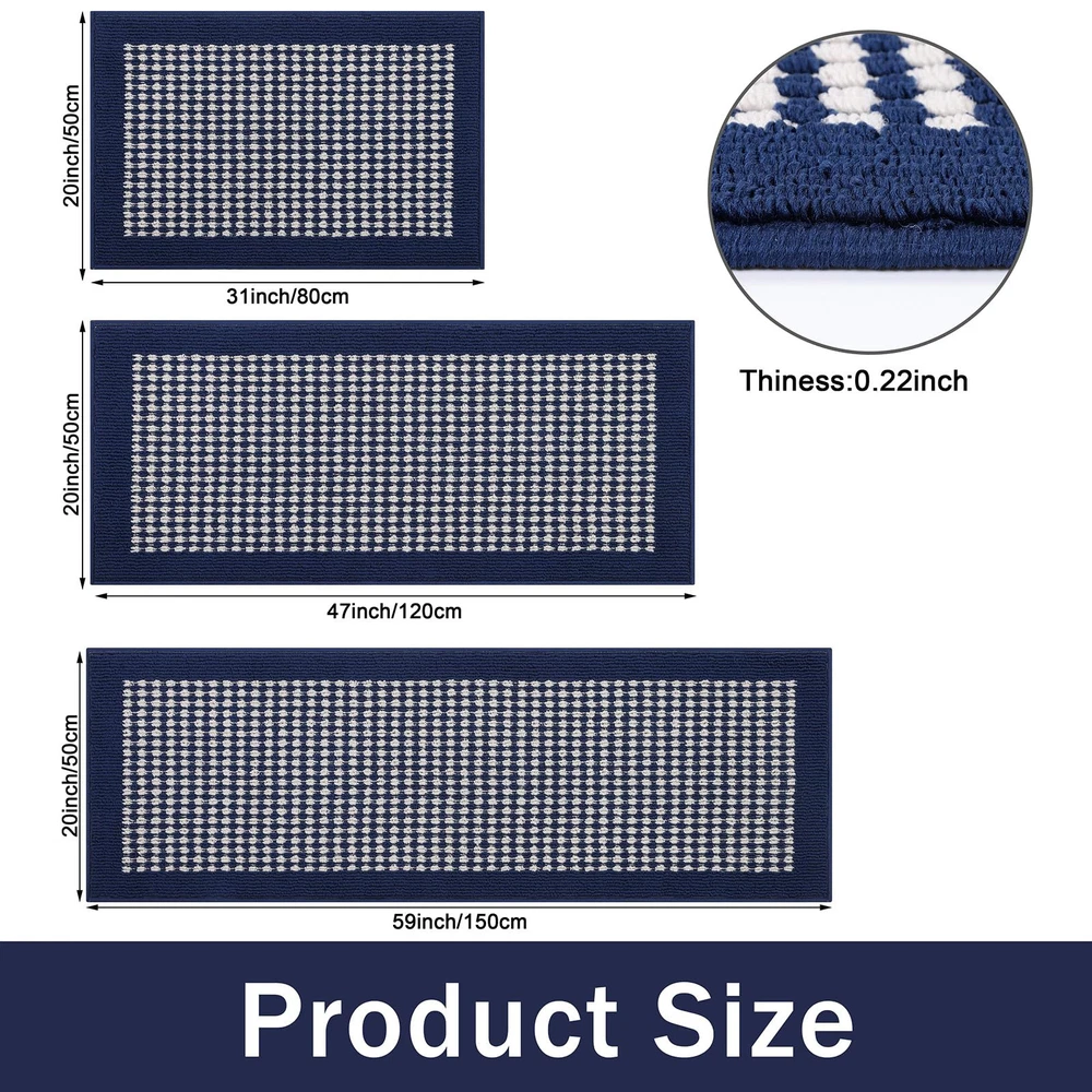 Kitchen Carpet Set 3-piece: This farmhouse kitchen carpet set includes 3 sets of kitchen pads, the size is 20 "x32" +20 "x47" +20 "x59". The kitchen can also be used separately in the washing room, corridor and indoor entrance. The simple pattern adds elegance to any area ofyour home. Absorbent Kitchen Mats for Floor: Kitchen carpet set is made of high -quality polypropylene fabric material. It is fast -drying and dry to protect your kitchen flooring dry and clean, avoiding humidity and stains. Low -key kitchen carpets can be placed in any place under the door. Durable materials are very suitable for areas with large people. Non Skid Kitchen Rugs: The kitchen ground cushion carpet uses non -slip TPR rubber background, which helps to keep this geometric pattern style carpet suit in place and provide additional protective layers for your floor. Don't worry about slipping, it is very suitable for families with pets or children. Machine Washable Runner Rugs: The rug sets is very easy to clean. Just use a handheld vacuum cleaner to remove the dirt or use the washing machine as needed. It is very convenient. Wash with cold water machine alone. (If you use a washing machine, please be careful not to wash with other clothes.) Use mild detergent. Do not bleach and air dry. Versatile Use: Kitchen rugs sets of 3 adopt classic Moroccan geometric pattern design to match any decoration, great to be used as kitchen floor mats in front of sink, laundry room rug runner in front washer or dryer, inside door mat, hallway runner rug, bathroom runner rug beside the tub. Non slip washable kitchen rug carpet is comfy also durable!