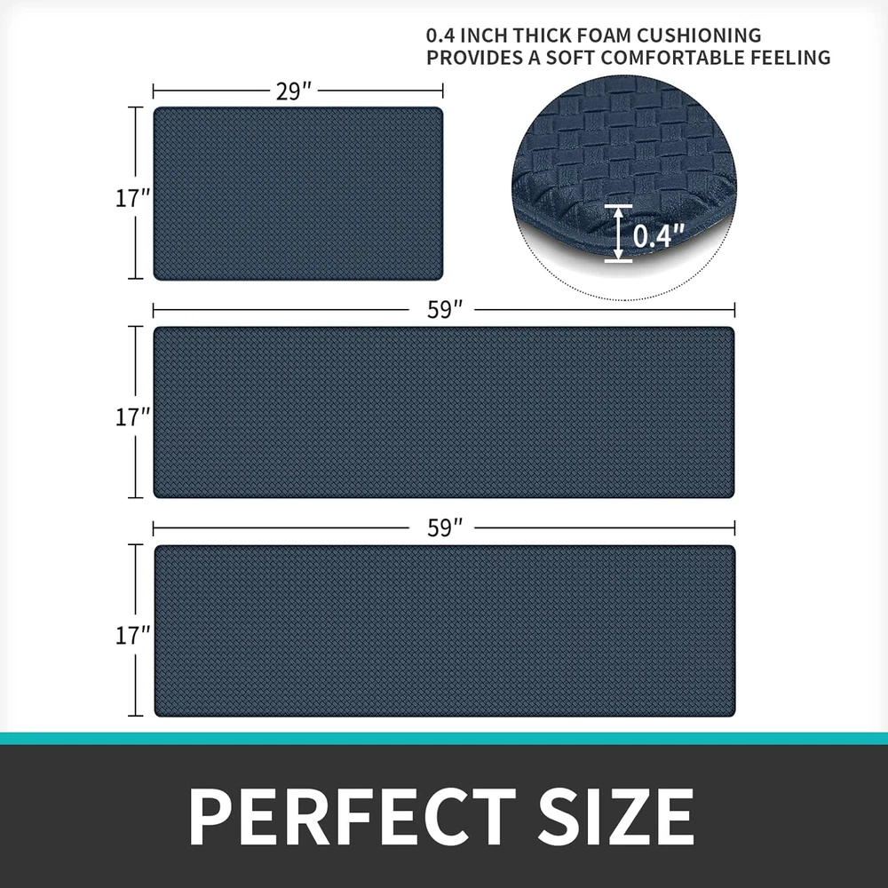 Store New Arrivals Add to Favorite View Feedback Contact Kitchen Rugs and Mats Cushioned anti Fatigue Comfort Runner Mats for Floor Rugs Waterproof Standing Rugs Set of 3, 17"X29"+17"X59"+17"X59" Navy Blue Description Item Thickness 0.4 Inches Number of Items 3 Color Blue Pattern Solid Material Polyvinyl Chloride (PVC) Shape Rectangular Special Feature Waterproof Product Care Instructions Laundry Kitchen Mat set of 3: This kitchen rugs and mats measure 17"x29"+17"x59"+17"x59", kitchen accessories package include kitchen rug sets 3 piece with runner. The thickness of kitchen rug is 0.4 inch (10mm); Please pay attention to the thickness before ordering the kichen mats.If your pet likes to scratch and sharpen claws, it is not recommended to buy this soft rugs. Kitchen Floor Mats Cushioned: Whether you’re cooking in kitchen or working at your standing desk, kitchen floor mats cushioned anti fatigue are sure to provide cushion on your feet, knees, lower back, and joints for standing. Easy Care: As one of the kitchen essentials,kitchen mats for floor must be easy to clean.Simply wipe the floor mat with a damp cloth or sponge, use any common household cleaner or sweep clean of dirt and dust, save your time and energy. Kitchen Decor: DEXI kitchen rugs provide a variety of colors to match your home decor.Choose the kitchen decor sets according to your kitchen wall and floor.Solid color and modern design add a pop color for your kitchen decoration. Non Slip Mat: Kitchen rugs and mats non skid backing provide safety for your family. The anti fatigue kitchen mats can be used for multiple surfaces(wood, ceramic, marble, etc).The anti fatigue mats are suitable for kitchen,living room,laundry or office. Make sure the floor is clean and dry before use. ABOUT US We offer the best prices around on high quality products. Our E-store includes media such as books, movies, music and games while offering electronics, toys, sporting apparel, clothing, tools, general home, garden items and more. SHIPPING We are always working hard to ensure your package arrives as soon as possible. Please understand that some factors like weather, high postal traffic, and the performance of shipping companies are outside of our control. We offer free shipping to the lower 48 states and ship within 2 business days of payment, usually sooner. We do not accept P.O. Boxes. Please provide a physical address. For shipping outside of the continental USA, we only use eBay's Global Shipping Program.The item is shipped to KY and then sent to the rest of the world. International customers are responsible for all duties and taxes. Continue to check out in order to calculate costs for shipping the item to your country. Messages regarding eBay's Global Shipping Program MUST be directed at eBay EXCLUSIVELY. RETURNS We offer a 30-Day Return Policy on items which you are not completely satisfied with. You have the option for a full-refund or an exchange of the item. No returns are available on items shipped outside of the USA. PAYMENT We accept PayPal. CONTACT US This page content is yet to come Please ad us to your favorite seller and visit again later Thank You CUSTOMER SATISFACTION We try our very best to make sure every customer is completely satisfied. If there's a problem, message us! We're happy to help. WE ACCEPT Copyright © 2021 AutoDS. | All Rights Reserved
