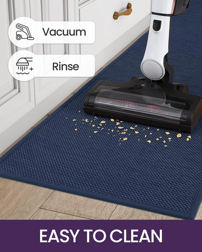 Menu Other Items Feedbacks About Us Contact Us Add To Favorites Kitchen Rugs and Mats for Floor, 17X29 + 17X59, Non Slip Washable Absorbent Thin Woven Runner Rug for Front of Sink, Laundry Room, Hallway, Navy ANTI SLIP KITCHEN MAT: Our non-slip rubber backing kitchen mats have great grip effect, which can keep the kitchen rugs fixed and anti-skid during use. Kitchen floor mat can provide safety for your family PREMIUM WOVEN KITCHEN RUGS: DEXI kitchen floor mats are super absorbent, which solve the oily and dirty water stains caused during the cooking process. Kitchen rug is a great way to keep your kitchen clean and tidy. The accent rug with ordered woven fit any kitchen style and decorate your kitchen well EASY TO CLEAN: This kitchen rug set is very easy to care for. For daily care, you may simply shake the carpet or use a vacuum. Don't worry about fiber falling because our fiber-locking technology ensures that rugs for kitchen will be washable many times SAFTY & HIGH QUALITY: DEXI kitchen rug sets were designed to last! The strong and sturdy underside on the mats features sturdy rubber backing. The upgrading technology adopted makes the polyester fiber solid and practical, not easy to fall off, perfect for homes with pets or kids MATCH YOUR STYLE: Choose from a variety of colors and modern designs to match your kitchen decor. Our kitchen floor mats add a pop of color and style to any space Product Description Item Specification Weave Type Machine Made Color Navy Material Polyester Item Weight 4.2 Pounds Size 17"x29"+17"x59" Dimensions Shipping Returns Additional Info Product Dimensions: 17.0 "w x 59.0 "w. Weight: 4.2 lb Fast shipping is very important for us. Our standard shipping service is FREE. Your order will be shipped within 1-3 business days upon full payment received. Most items are delivered within 3-5 business days, however, please allow 3-10 business days. We are shipping only to USA. We only ship to the confirmed Paypal address. We reserve the right to cancel any order for any reason at any time. We are not responsible for undeliverable addresses. We offer a 30 day return policy from checkout winning date. Your satisfaction is guaranteed! If for any reason you are unhappy with your item, just return it within 30 days for a full refund, minus shipping cost. Please contact us prior to initiating a return so that we can issue you a refund authorization. Items defective upon receipt must be packaged in their retail packaging as if new and returned with a detailed description of the problem. Return shipping fees are not refundable. We reserve the right to decline any returns if the above guidelines are not followed. All of our items, unless otherwise stated, will only run on 120 volts. Please check to make sure your country complies with these specifications. If you have a problem or question regarding your transaction please contact us before leaving any type of feedback. We will work with you to resolve any problem you may have.