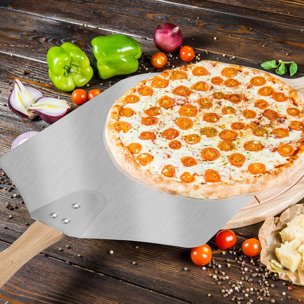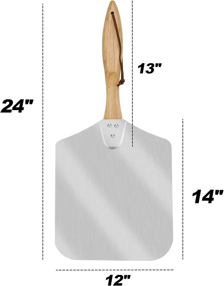 Store New Arrivals Add to Favorite View Feedback Contact Kitchen Supply Aluminum Pizza Peel with Wooden Handle 12 Inch X 14 Inch, Pizza Paddle for Baking Homemade Pizza Bread Description Included Components Pizza Peel Capacity 12 Inches Color Silver Upper Temperature Rating 2200 Degrees Fahrenheit Material Aluminum Material Type Aluminum Item Weight 703 Grams Is Oven Safe Yes Shape Rectangular Product Care Instructions Dishwasher Safe Is the item dishwasher safe? Yes Specific Uses For Product Pizza Special Feature Oven safe Size 12" x 14" The paddle is large enough to fit your pizzas yet compact so that you can control it easily amd it can fit most home ovens, also perfect for baking bread, pastries and more The paddle part is made of aluminum which allows even spreading of heat and allows it to last long even with a low maintenance The handle is made of pine wood which gives it an elegant appearance, it will stay cool when the peel is in the oven, keeping your hand safe from heat, the ergonomic contours provide you comfortable grip and excellent using experience The edges of the paddle have been tapered so that you can smoothly slide it under your pizza crust The handle has flannel hanging cord, with which you can hang the peel on the kitchen wall Product Description Enjoy life as they do in Bella Italia, envision feasting on a hot, fresh, flavorful pizza on a quaint patio in Naples. Now, imagine eating that same pizza in the comfort of your own backyard. Let our Skyflame Gourmet BBQ System Pizza Tools save you the trip. Whether making pizza, bread, or dessert, enjoy a taste of la dolce vita any night of the week. Time for a pizza party! With this Pizza Peel you'll no longer have to fret with moving the pizza from prep to pan and from pan to plate. These great pizza peels will help you make enough pizza for everybody, while protecting your hands out of the hottest part of a wood fired oven or grill and to prevent burning your hands on hot baked goods. Peel prevents spills and burns - keeping pizza party ever - so fun. Amazing Tool for Making Pizza 12" x 14" Pizza Peel Skyflame Aluminum Metal Pizza Peel with Wooden Handle was crafted specifically for the pizza maker, home chef and artisan baker. Designed with function and practicality in mind, the aluminum is made from commercial grade aluminum for durability and withstanding high temperatures. The paddle is a perfect match for any kitchen decoration, gourmet pizza parlor and bakery. It's incredible strength prevents warping and subdues heat from transferring pizza and baked goods to and from an oven/grill. Details The stainless steel pizza peel and the natural wooden handle are perfectly matched. (The light blue shown in the picture is the color of the protective film attached to the shovel surface, and the protective film is used to prevent friction or any other damage during transportation) Plus the handle and the shovel surface are perfectly fixed and matched with three screws. The overall looks quite attractive. The stainless steel pizza peel and the natural wooden handle are perfectly matched. (The light blue shown in the picture is the color of the protective film attached to the shovel surface, and the protective film is used to prevent friction or any other damage during transportation) Plus the handle and the shovel surface are perfectly fixed and matched with three screws. The overall looks quite attractive. Pure gourmet acacia wood pizza peel is design to look great with its natural wooden spatula paddle pattern look in the kitchen, on the wall, or slid into the cupboard. Steps Of Making A Pizza Using a spoon to mix the flour, salt and olive oil in a large bowl until a shaggy dough begins to form. Turn the dough out onto a clean work surface and knead for 10-15 minutes. The dough should be soft, smooth, and bouncy. Form the dough into a taut round. Cover it with plastic wrap. Let rise for at least an hour, or up to 24 hours. Prepare the sauce and any other ingredients. Preheat the oven as high as your oven will allow, between 450-500˚F (230-260˚C). Sprinkle semolina onto an upside down baking sheet and place the stretched crust onto it. You can also roll the dough onto a piece of parchment paper to shape the pizza.(The dough sticks to the parchment, making it easier to work with and easier to transfer into the oven. The pizza will release from the parchment during cooking and the parchment can be removed halfway through cooking.) Add the sauce and ingredients of your choice. Slide the pizza onto the preheated pizza stone. Bake for 15 minutes, or until the crust and cheese are golden brown. Add any garnish of your preference. Cut your pizza into pieces and enjoy! Warm Tips We recommend to use parchment papersprinkle flour, cornmeal or milled wheat bran on the pizza peel to prevent sticking, the baked goods can easily slide and take off. Better to wash with warm soapy water. ABOUT US We offer the best prices around on high quality products. Our E-store includes media such as books, movies, music and games while offering electronics, toys, sporting apparel, clothing, tools, general home, garden items and more. SHIPPING We are always working hard to ensure your package arrives as soon as possible. Please understand that some factors like weather, high postal traffic, and the performance of shipping companies are outside of our control. We offer free shipping to the lower 48 states and ship within 2 business days of payment, usually sooner. We do not accept P.O. Boxes. Please provide a physical address. For shipping outside of the continental USA, we only use eBay's Global Shipping Program.The item is shipped to KY and then sent to the rest of the world. International customers are responsible for all duties and taxes. Continue to check out in order to calculate costs for shipping the item to your country. Messages regarding eBay's Global Shipping Program MUST be directed at eBay EXCLUSIVELY. RETURNS We offer a 30-Day Return Pol