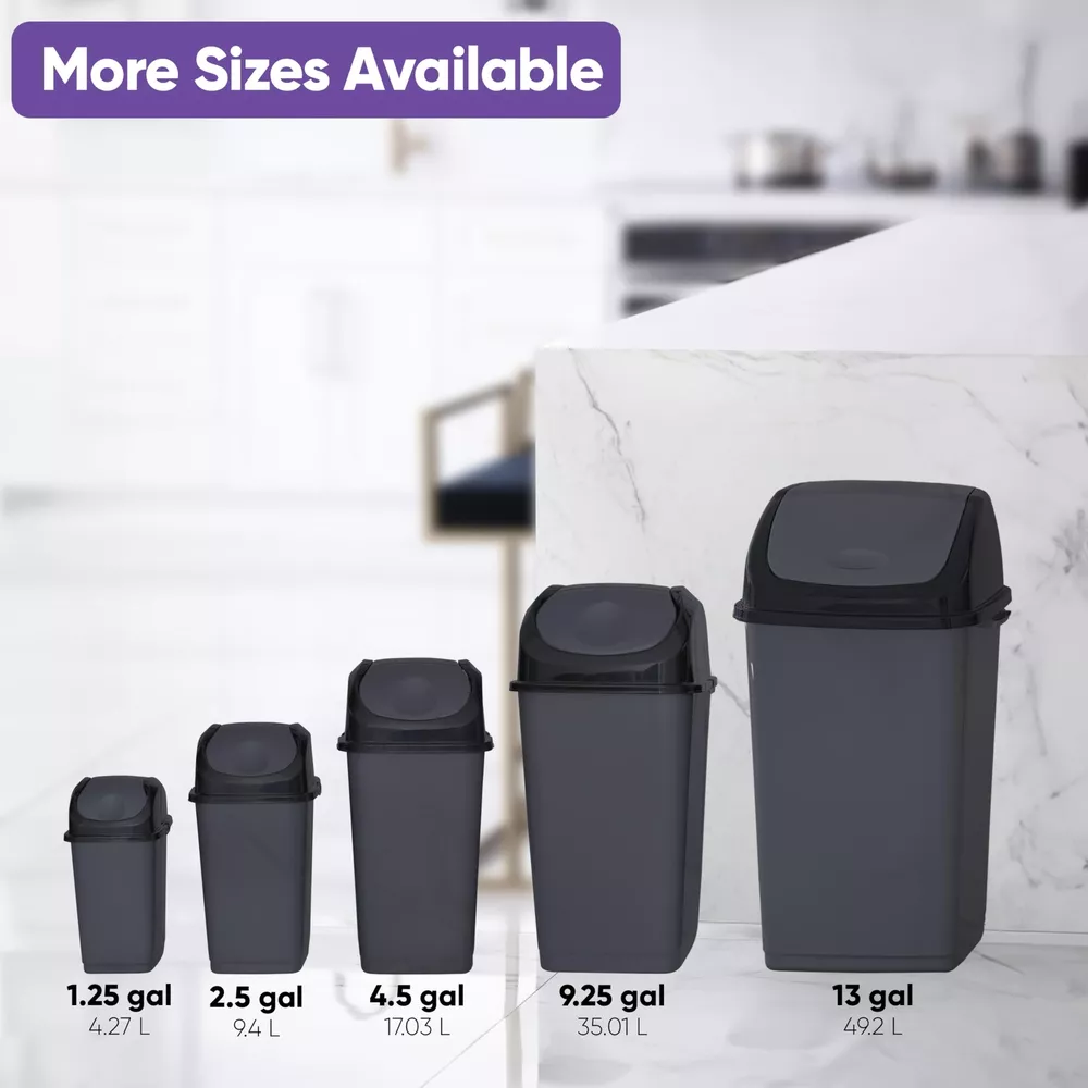 plastic kitchen trash cans are designed for durability, convenience, and style. These garbage cans are made from a sturdy plastic material that is easy to clean and maintain. The tight-fitting lids help keep odors contained. The sleek and modern design of these trash cans adds a stylish touch to any kitchen. They come in a variety of sizes and colors, making it easy to find the perfect trash can for your needs. Unlike stainless steel trash cans, this durable and high-quality plastic garbage can, will never rust! Our swing lid garbage can will last you for years to come. This high quality slim Waste Bin is especially designed to fit "narrow areas" and is a great space saver. It offers a easy to use swinging cover that opens smoothly from both sides, a classical design and shape. Large Capacity – lidded trash can has the perfect size for any type of outdoor or indoor waste bin application, with a capacity of 13 gallons, you won’t have to take out the trash multiple times. Ideal to use as a large outdoor trash can with lid or as kitchen waste bins. Swing Top Lid – Keep your trash contained and out of sight with this easy swing lid garbage bin. It closes right away preventing any trash from getting out and makes it easier to clean while not having to use a regular opening lid. It’s a useful addition to your office, bathroom, or kitchen. Durably Constructed – Classic, convenient and versatile, this trash bin is the perfect solution to your trash problem. This durable and high-quality plastic wastebasket helps keep your home clean and more organized, while also eliminating bad odors in the room! Easy to Use and Maintain – Our Swing Top Trash Can is a great way to store your trash without the worry of spilling. The wide opening makes it convenient to put trash in and it lets you easily access the wastebasket so you don't have to bend over as you empty it. Place it anywhere – Our collection of durable, high-quality trash cans is the ultimate way to keep your home neat and clean. The 13 gallon trash can has a simple yet effective design that looks great on any decor. Use it as kitchen trash can, bathroom trash can, office trash can, hallway trash can, outdoor trash can, dog poop trash can, and more!