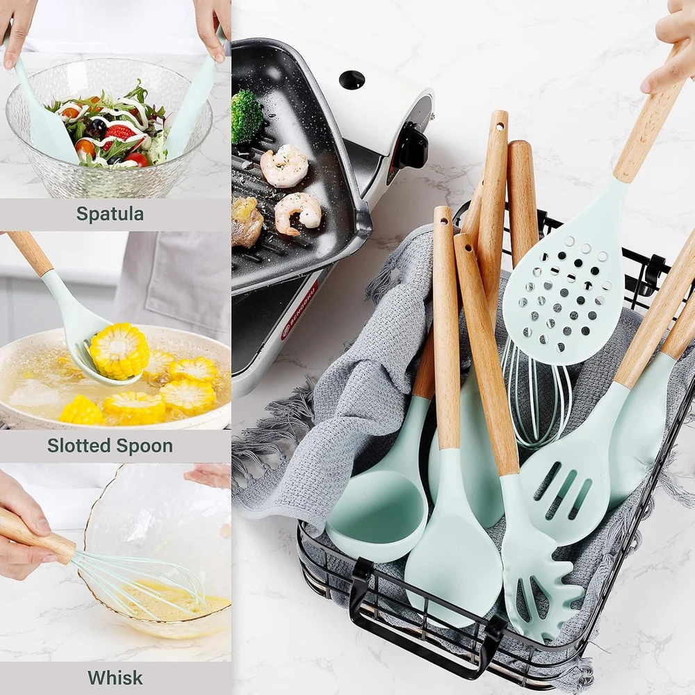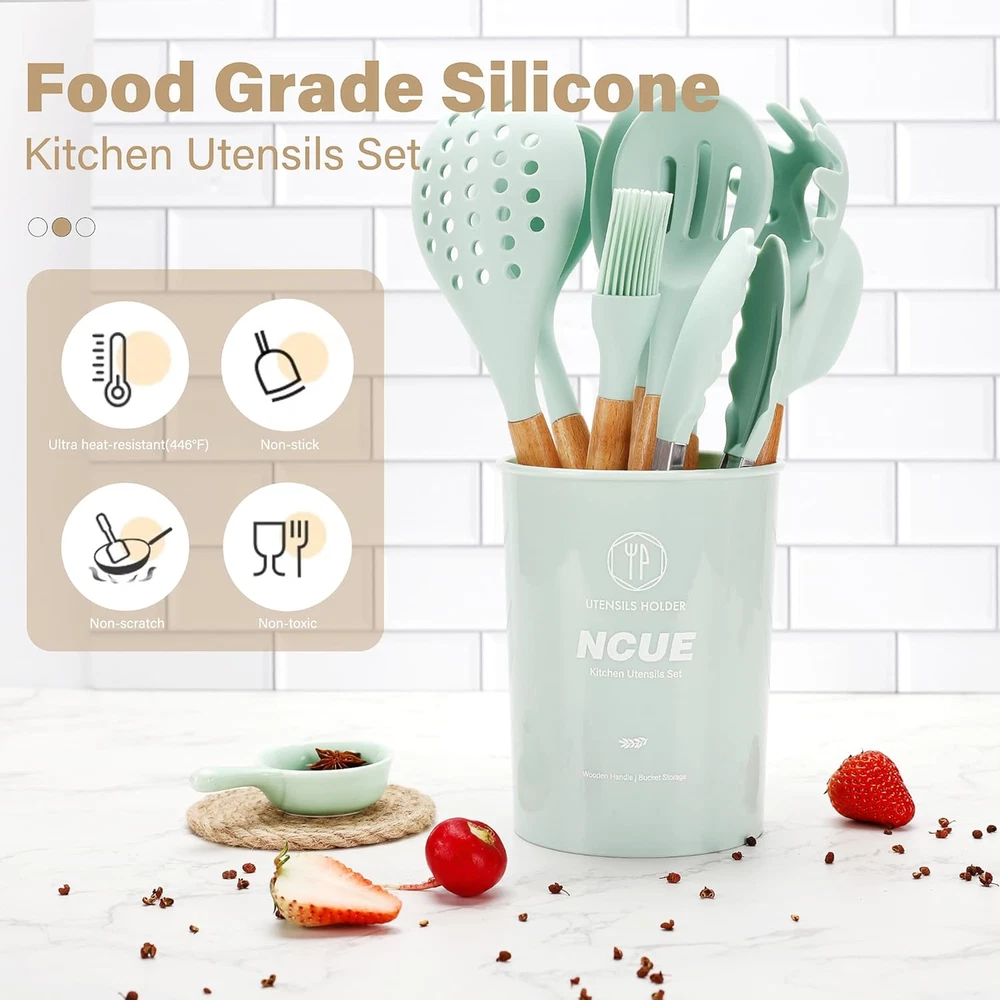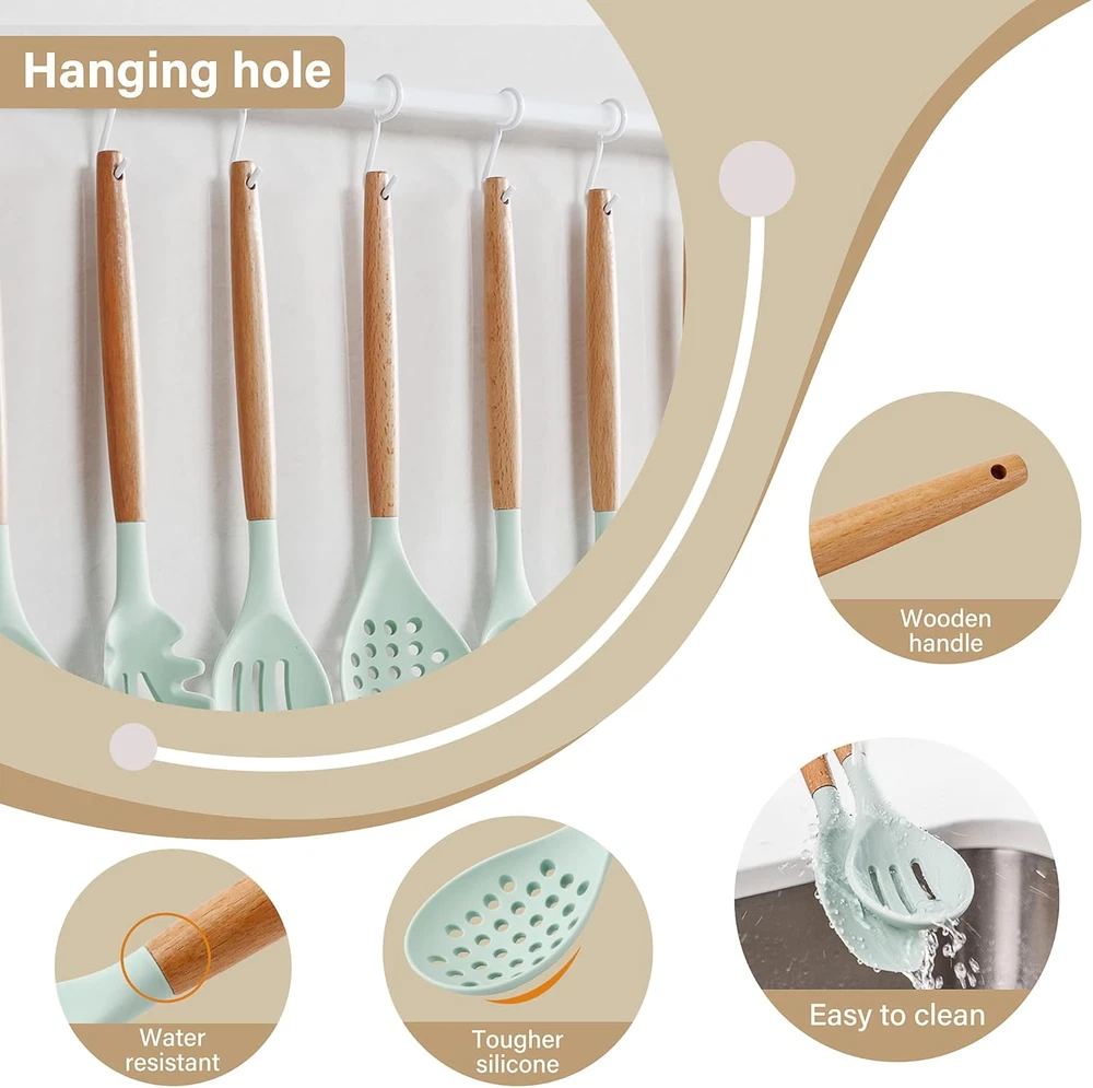 Store New Arrivals Add to Favorite View Feedback Contact Kitchen Utensils Set, 26 Pcs BPA Free Non-Stick Silicone Cooking Kitchen Utensils Set with Holder, Wooden Handle Heat Resistance Silicone Spatula Spoon Kitchen Gadgets Utensils Set (Light Green) Description Item model number NC26P Color Light Green Material Silicone Is Dishwasher Safe Yes Item Weight 3.11 pounds Handle Material Wood Recommended Uses For Product Serving, Flipping, Spreading Shape Rectangular, Trapezoid, Round Size small Product Dimensions 12.67"L x 4.5"W Material Type Free BPA Free Food Grade Silicone: This kitchen cookware set is made of food grade silicone and is BPA free. They will not react with food or drinks and will not produce any fumes. They will not bend or break like other cheap silicone kitchen utensils, so you and your family can enjoy the process of preparing food with confidence Heat and Scratch Resistant: All-around silicone added softness has a super heat resistance of up to 446°F/230°, so you don't have to worry about them melting if you accidentally leave them in the pan for a while. The silicone tip protects your pans and keeps the surface of your cookware from getting scratched or dented. Extend the life of all kitchen pans Easy to Clean And Quality Wood Handles: This set of quality kitchen silicone utensils is easy to clean, just wipe in warm water. The high quality wooden handle will not bend or rust and completely reduce heat transfer during cooking to avoid burning your hands. Practical hanging hole design allows for easy storage using hooks or wall hangings Complete Cooking Set: 26 silicone cooking utensils set including flexible spatulas, soup spoons, serving spoons, pasta servers, spatula turners, tongs, measuring cups and spoons and more. Meet your various kitchen needs, you don't need to spend a lot of money to buy each utensil individually. If you have any questions about our cutlery sets, please feel free to contact our customer service and we will be happy to help you Fine Gift: 26 different shapes of unique function cookware will be a good helper in your kitchen, it can be given as a gift to anyone who likes to cook, it is an ideal gift for friends and family at Christmas, Thanksgiving, wedding and housewarming party Product Description They will satisfy all your needs for cooking, would be your great companion in the kitchen. Each of them has its unique use. And the simple and modern design fits perfectly in any kitchen, easily matching the style of any other item or appliance. 100% PREMIUM BPA FREE NON-STICK FOOD GRADE SILICONE Does not react with food or drinks, or produce any harmful fumes. Soft silicone won't scratch your expensive pans. ABS Plastic Filter utensils Holder with small drainage holes in the bottom ensure no water stay. High temperature resistance up to 446°F/230°C. The soft silicone won't scratch non-stick pans or your larger pans. Meet your various cooking needs 26-Piece Kitchen Utensil Set With holder for neaty storage and drain easily ABOUT US We offer the best prices around on high quality products. Our E-store includes media such as books, movies, music and games while offering electronics, toys, sporting apparel, clothing, tools, general home, garden items and more. SHIPPING We are always working hard to ensure your package arrives as soon as possible. Please understand that some factors like weather, high postal traffic, and the performance of shipping companies are outside of our control. We offer free shipping to the lower 48 states and ship within 2 business days of payment, usually sooner. We do not accept P.O. Boxes. Please provide a physical address. For shipping outside of the continental USA, we only use eBay's Global Shipping Program.The item is shipped to KY and then sent to the rest of the world. International customers are responsible for all duties and taxes. Continue to check out in order to calculate costs for shipping the item to your country. Messages regarding eBay's Global Shipping Program MUST be directed at eBay EXCLUSIVELY. RETURNS We offer a 30-Day Return Policy on items which you are not completely satisfied with. You have the option for a full-refund or an exchange of the item. No returns are available on items shipped outside of the USA. PAYMENT We accept PayPal. CONTACT US This page content is yet to come Please ad us to your favorite seller and visit again later Thank You CUSTOMER SATISFACTION We try our very best to make sure every customer is completely satisfied. If there's a problem, message us! We're happy to help. WE ACCEPT Copyright © 2021 AutoDS. | All Rights Reserved