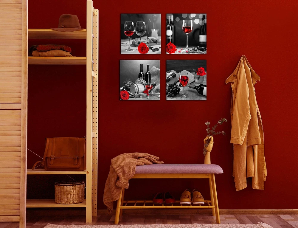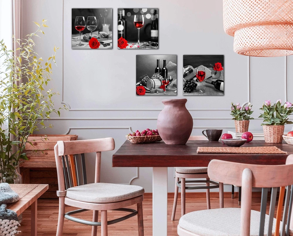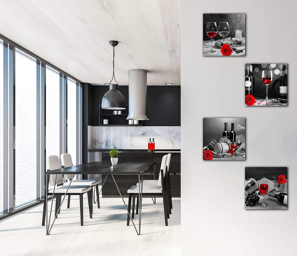 Kitchen Wall-Art - Wine Decor For Kitchen,Black And White Wall Art - Modern Wall Art For Living Room - Red Rose Artwork Gray Cask 4 Framed Canvas Art 14x14 Inches Product Details Size: 14"x14"x4Pcs Color: Red Brand: aburaeart UPC: 616859144859 EAN: 0616859144859 MPN: Does not apply Item Weight: 2.5 Pounds Unit Count: 4 Count Item Dimensions L x W: 14"L x 4"W Size: 14"x14"x4Pcs Room Type: Apartment,Bathroom,Bedroom,Dining Room,Dormitory,Guest Room,Kitchen,Living Room,Office Color Family: Red Pattern: Solid Wall Art Form: Painting Color: Red Style Name: Modern Orientation: Landscape Item Shape: Square Theme: Nature Paint Type: Oil Cover Material: Canvas Paper Finish: Watercolor Frame Material: Wood Material Type: Canvas Indoor Outdoor Usage: Indoor Recommended Uses For Product: Kitchen decor, Living room, Bedroom, Studio, SPA, Guest room, Office decor, Hotel, Dining room wall decor UPC: 616859144859 Number Of Panels: 4 Package Type: Standard Packaging Number of Items: 4 Brand: aburaeart Mounting Type: Wall Mount Additional Features: Waterproof, Non fading, UV resistant Frame Type: Framed CANVAS WALL ART SIZE: 14"x14"x4piece. They were not taken in real display rooms and do not represent the real size of the print set. Please refer to the last picture for the specific size. HI-Q MATERIAL: Wine decor for kitchen,High quality, HD prints on premium canvas, waterproof, UV resistant, fading resistant indoor. EASY TO HANG: Each panel of canvas prints already stretched on solid wooden frames, gallery wrapped, ready to hang. The side margins are also printed to create a particularly decorative effect. Added color and fun to your room, office, dormitory or apartment. STYLISH CANVAS ART DESIGN: Good idea for home interior walls decor such as kitchen wall art,wine decor for kitchen,living room, wall art for bedroom, kitchen decor, bathroom wall decor, studio, SPA, guest room, office decor, hotel, dining room wall decor and others. Its a great gift ideal to your friends. AFTER SALE SERVICE: If the package have damaged during delivery, you can contact me any time, we can refund or resend a new one to you.