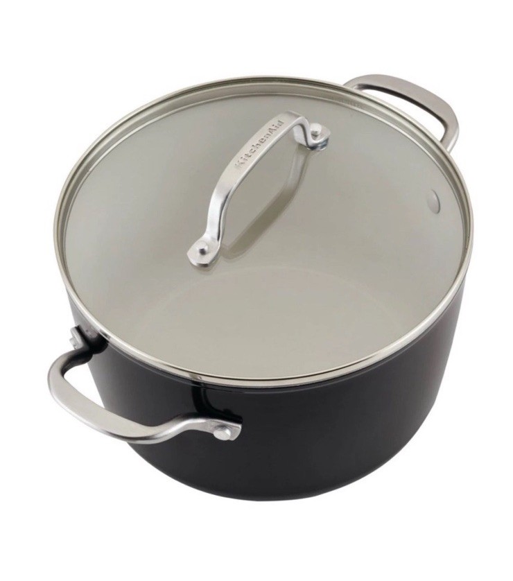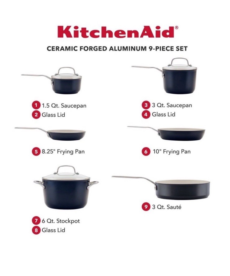 KitchenAid 9-Piece Forged Aluminum Ceramic Cookware Set with Fry Pan Stockpot Oven Safe to 500F Black