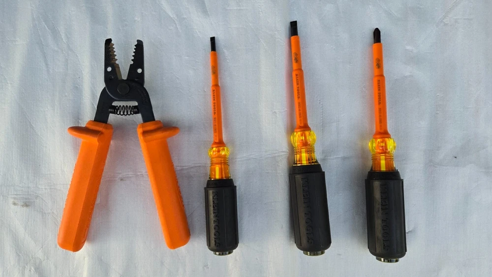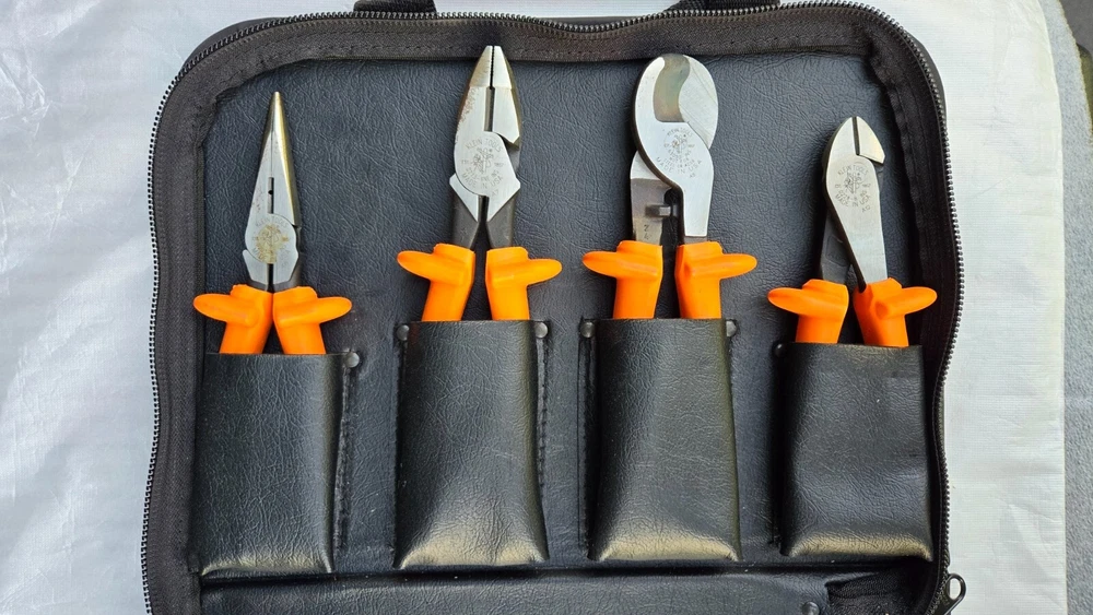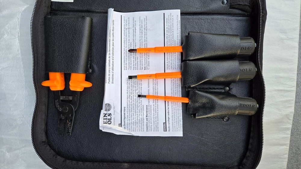 New / Unused in open case Klein Tools 33526 8 Piece 1000V Electrical Insulated Tool Kit. A couple of the tools have minor surface rust from long term storage in high humidity. Tool kit is being sold "As Is". Refer to photos for tool condition. Inquire with any questions prior to purchase. This 8 piece tool kit from Klein Tools is designed for electrical work and features 1000V basic insulation for added safety. Made in the United States, the kit includes a variety of essential tools such as pliers, screwdrivers, and a wire stripper. Each tool is branded with the Klein Tools name, ensuring quality craftsmanship and reliability. Perfect for professionals and DIY enthusiasts alike, this kit is a must-have for any electrical project. 33536 Klein Tool Kit Contents D203-8N- INS Needle Nose Plier D213-9N -EINS Lineman’s Plier 63050-INS Cable Cutter D228-8-INS Diagonal Plier 601-4-INS Slotted Screwdriver 602-4-INS Slotted Screwdriver 603-4-INS Phillips Screwdriver 11045-INS Wire Strippers Ridged backed/soft case with carry handles