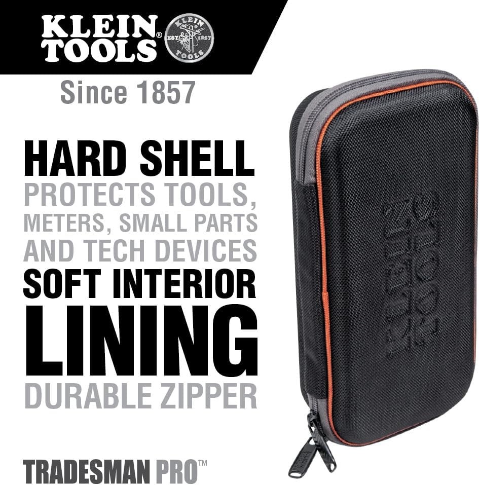 Klein Tools 5189 Tradesman Pro Hard Case Large Large, Black Product Details Brand: Klein Tools Material: Polyester Color: Black Product Dimensions: 1"L x 1"W x 1"H Maximum Weight Recommendation: 500 Pounds Number of Compartments: 1 Manufacturer: Klein - Geneva Supply Part Number: 5189 Item Weight: 10.1 ounces Country of Origin: China Item model number: 5189 Is Discontinued By Manufacturer: No Size: Large Style: Classic Pattern: Solid Item Package Quantity: 1 Number Of Pieces: 5 Included Components: Unit^Instruction Guide Batteries Included?: No Batteries Required?: No Brand: Klein Tools Material: Polyester Color: Black Product Dimensions: 1"L x 1"W x 1"H Maximum Weight Recommendation: 500 Pounds Hard shell protects tools, meters, small parts and tech devices Soft interior lining Durable zipper closure Offers great protection in a convenient size Size is 10.25 x 2.25 x 5.5-Inch Case fully closes when zipped Keep meters, tech devices, and tools protected in Klein Tools' Tradesman Pro Large Hard Case. The hard outer shell protects items when in a tool bag or pouch. The case zips fully closed, so it is also great for storing small parts. For more than 160 years, Klein Tools has manufactured premium-quality, professional-grade hand tools that deliver the performance, durability and precision needed to get the job done right. Our family of engineers, workers and craftsman continue to put six generations of expertise into every tool we create by using only the highest quality materials, superior workmanship, and keeping manufacturing as close to home as we can. Klein isn't just the name of our company, it's also our family name. And since we're an American company that's family-owned and family-run, you know you can count on us to be here tomorrow. Klein Tools doesn't just make great products, we make great products that stand up to the demands of the professionals who use them every day ... Since 1857.