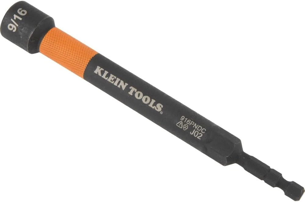 Klein Tools 916PNDC 9/16-Inch Magnetic Color-Coded Power Nut Setter, One Size Product Details Brand: Klein Tools Item Length: 6.32 Inches Material: Alloy Steel Drive System: External Hex Finish Type: Painted Number of Pieces: 1 Manufacturer: Klein Tools Part Number: 916PNDC Item Weight: 6.1 ounces Country of Origin: Taiwan Item model number: 916PNDC Size: One Size Style: 9/16" Nut Setter Finish: Painted Item Package Quantity: 1 Batteries Required?: No Brand: Klein Tools Item Length: 6.32 Inches Material: Alloy Steel Drive System: External Hex Finish Type: Painted 9/16-INCH NUT SETTER: One of the five most commonly used SAE hex driver sizes IMPACT-RATED: Nut setter is engineered for the most demanding driving tasks with exceptional impact resistance RARE-EARTH MAGNET: Powerful Rare-Earth magnet securely holds fasteners, enabling effortless one-handed driving COLOR CODED: Hex size is color-coded for effortless identification EXTENDED REACH: 5-Inch durable shaft enhances both reach and accessibility CORROSION PROTECTION: Durable finish provides long life and durability REPLACEMENT PART: 9/16-Inch nut setter is a replacement part for the 5-piece Magnetic Color-Coded Power Nut Setter Set, sold separately (Cat. No. 32930) Klein Tools' 9/16-Inch Magnetic Color-Coded Power Nut Setter was designed with the professional in mind. Made of high-grade impact steel and is color-coded for easy identification. The nut setter contains Rare-Earth magnets to securely hold fasteners, and is also extra long for greater reach and access. For more than 160 years, Klein Tools has manufactured premium-quality, professional-grade hand tools that deliver the performance, durability and precision needed to get the job done right. Our family of engineers, workers and craftsman continue to put six generations of expertise into every tool we create by using only the highest quality materials, superior workmanship, and keeping manufacturing as close to home as we can. Klein isn't just the name of our company, it's also our family name. And since we're an American company that's family-owned and family-run, you know you can count on us to be here tomorrow. Klein Tools doesn't just make great products, we make great products that stand up to the demands of the professionals who use them every day ... Since 1857.