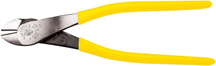 Klein Tools D2000-49 Pliers, Made in USA, Diagonal Cutting 9-Inch, Yellow Product Details Brand: Klein Tools Material: Alloy Steel Product Dimensions: 12"L x 4"W Color: Yellow Handle Material: Alloy Steel Item Weight: 0.6 Ounces Specific Uses For Product: Nails,Cutting Pliers,Cutting Specification Met: US Tool Steel Standard or Steel Material Standard Grip Type: Power Cutting Width: 1.25 Inches Manufacturer: Klein Tools Part Number: D200049 Item Weight: 0.6 ounces Item model number: D200049 Is Discontinued By Manufacturer: No Size: 9-Inch Item Package Quantity: 1 Measurement System: Metric Included Components: 9-inch Diagonal Cutting Pliers Angled Head Batteries Included?: No Batteries Required?: No Brand: Klein Tools Material: Alloy Steel Product Dimensions: 12"L x 4"W Color: Yellow Handle Material: Alloy Steel Item Weight: 0.6 Ounces Specific Uses For Product: Nails,Cutting Pliers,Cutting Specification Met: US Tool Steel Standard or Steel Material Standard Grip Type: Power Cutting Width: 1.25 Inches Diagonal Cutting Pliers cut ACSR, screws, nails, and most hardened wires Longer handles for added leverage, reach and comfort High-leverage design has 67-percent more cutting power Angled head design for easy work in confined space Made in USA with custom, US made tool steel Induction-hardened cutting knives outlast other cutters Plastic-dipped handles for comfort and ease of identification These Diagonal Cutters are designed and built to exceptional quality standards in a tradition spanning close to 160 years. These 9-Inch high-leverage diagonal-cutting pliers feature an angled head, heavy-duty cutting knives and an extra inch of handle to provide additional leverage, reach and comfort on the job. Who knew an extra inch could make your job easier? Pick up this Klein tool and you will feel the difference. For more than 160 years, Klein Tools has manufactured premium-quality, professional-grade hand tools that deliver the performance, durability and precision needed to get the job done right. Our family of engineers, workers and craftsman continue to put six generations of expertise into every tool we create by using only the highest quality materials, superior workmanship, and keeping manufacturing as close to home as we can. Klein isn't just the name of our company, it's also our family name. And since we're an American company that's family-owned and family-run, you know you can count on us to be here tomorrow. Klein Tools doesn't just make great products, we make great products that stand up to the demands of the professionals who use them every day ... Since 1857.