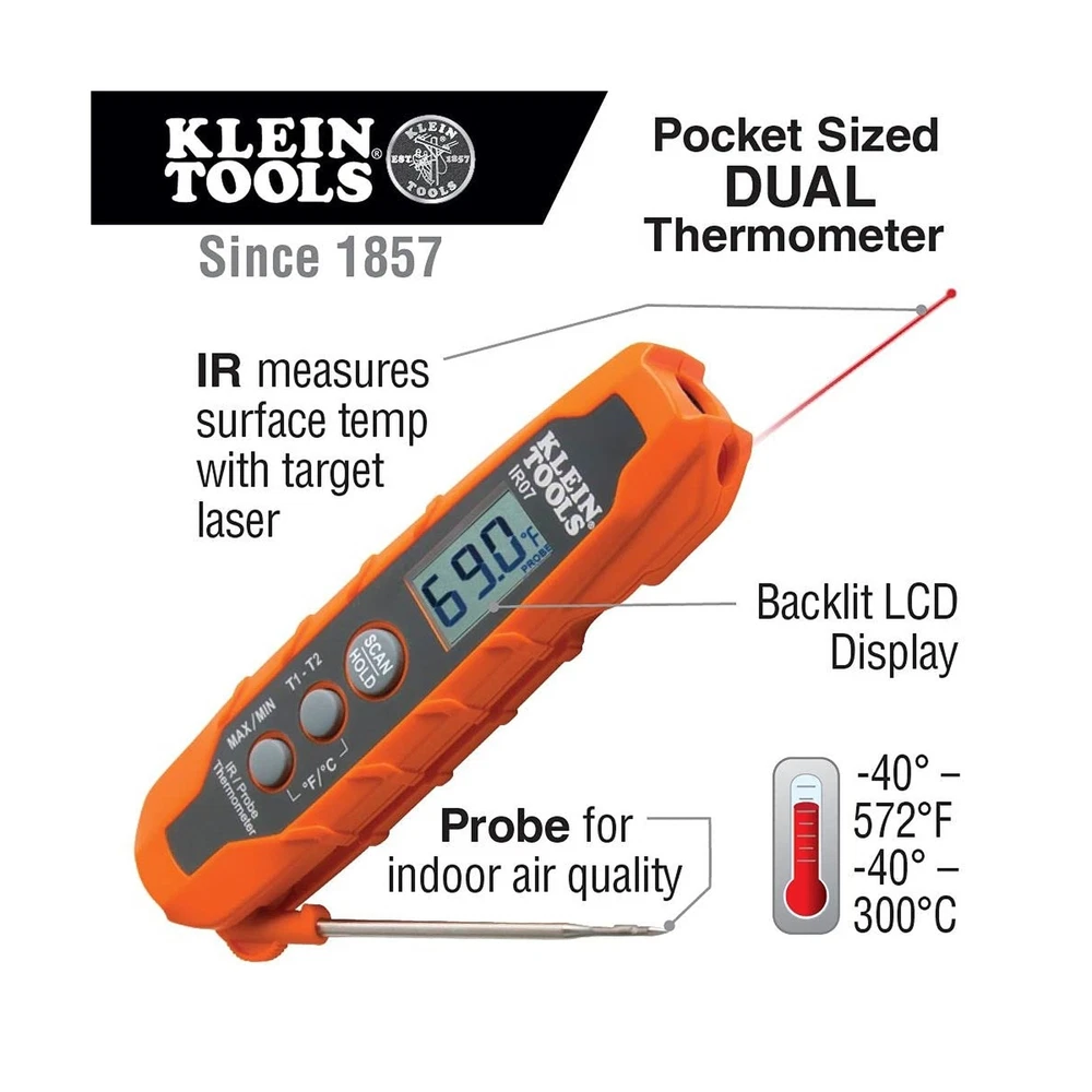 Klein Tools CL320KIT HVAC Kit for HVAC Testing; Digital Clamp Meter, Non-Contact Voltage Tester, and Infrared/Probe Thermometer Description Klein Tools HVAC Electrical Test Kit features Cat. No. CL320 Auto-Ranging, TRMS (True Root Mean Square), 400A HVAC Clamp Meter; Cat. No. IR07 Dual IR and Probe Thermometer, for both surface and air temperature measurements; and Cat. No. NCVT3P Dual Range Non-Contact Voltage Tester With Flashlight, for detection of AC voltage from 12 to 1000V with visual and audible indicators. Included is a convenient carrying pouch, test leads with CAT III/CAT IV safety caps, thermocouple, and all batteries. Features: HVAC PROFESSIONAL KIT: Includes HVAC Digital Clamp Meter, Dual IR/Probe Thermometer, and Dual Range Non-Contact Voltage Tester with Flashlight VERSATILE CLAMP METER: CL320 measures AC current and NCVT via clamp; AC/DC voltage, resistance, continuity, frequency/duty cycle, DC microamps, diode test and capacitance via test-leads; temperature via thermocouple TEMPERATURE MEASUREMENT: Dual IR Probe and Thermometer (Cat. No. IR07) measures temperature from -40 to 572F (-40 to 300C) with infrared thermometer and includes a temperature probe for air vents and ducts DIFFERENTIAL TEMPERATURE: Calculate differential temperature (T1-T2) using both IR and probe temperatures, with a hands-free hanging hook for the temperature probe VERSATILE VOLTAGE DETECTION: Dual-range Non-Contact Voltage Tester (Cat. No. NCVT3P) detects voltage from 12 to 1000V AC or 70 to 1000V AC with visual and audible indicators BRIGHT FLASHLIGHT: Integrated flashlight illuminates the work area and can be used independently of the voltage detection function NOTE ON USAGE: IR07 Thermometer is not intended for medical or animal use, and it is designed for professional HVAC applications Product Details: Brand: Klein Tools Power Source: Battery Powered Style: Test Kit Color: Black, Orange Item Weight: 1.58 Pounds Is Discontinued By Manufacturer : No Product Dimensions : 1 x 1 x 1 inches; 1.58 Pounds Item model number : CL320KIT Department : Unisex-Adult Date First Available : March 19, 2021 Manufacturer : Klein Tools Country of Origin : China Best Sellers Rank: #12,083 in Industrial & Scientific (See Top 100 in Industrial & Scientific) #11 in Clamp Meters #11 in Clamp Meters Handling We will ship all orders within 3 / 5 business day of payment. Delivery We Do Not Ship Outside of the Continental US. Return Policy All items qualify for returns within 30 days of receipt. Buyer is responsible for return shipping on any item that is not damaged. Feedback We take our reputation seriously, we buy and sell online, so we understand the value of trust. If you are unsatisfied with your order, please contact us and we will work with you to resolve it to your satisfaction.