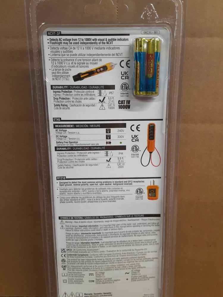 This Klein Tools electrical test kit is a must-have for any electrician or DIY enthusiast. The kit includes the NCTV-3P voltage tester, ET45 voltage tester, and GFCI outlet tester. Made by Klein Tools in China, this kit ensures high-quality testing of electrical systems. The California Prop 65 warning status is currently unknown. This kit is ideal for use in various electrical applications and is categorized under Business & Industrial, Light Equipment & Tools, Electrical Tools, and Electrical Tool Kits. Don't miss out on this amazing opportunity to get your hands on this fantastic electrical test kit from Klein Tools.