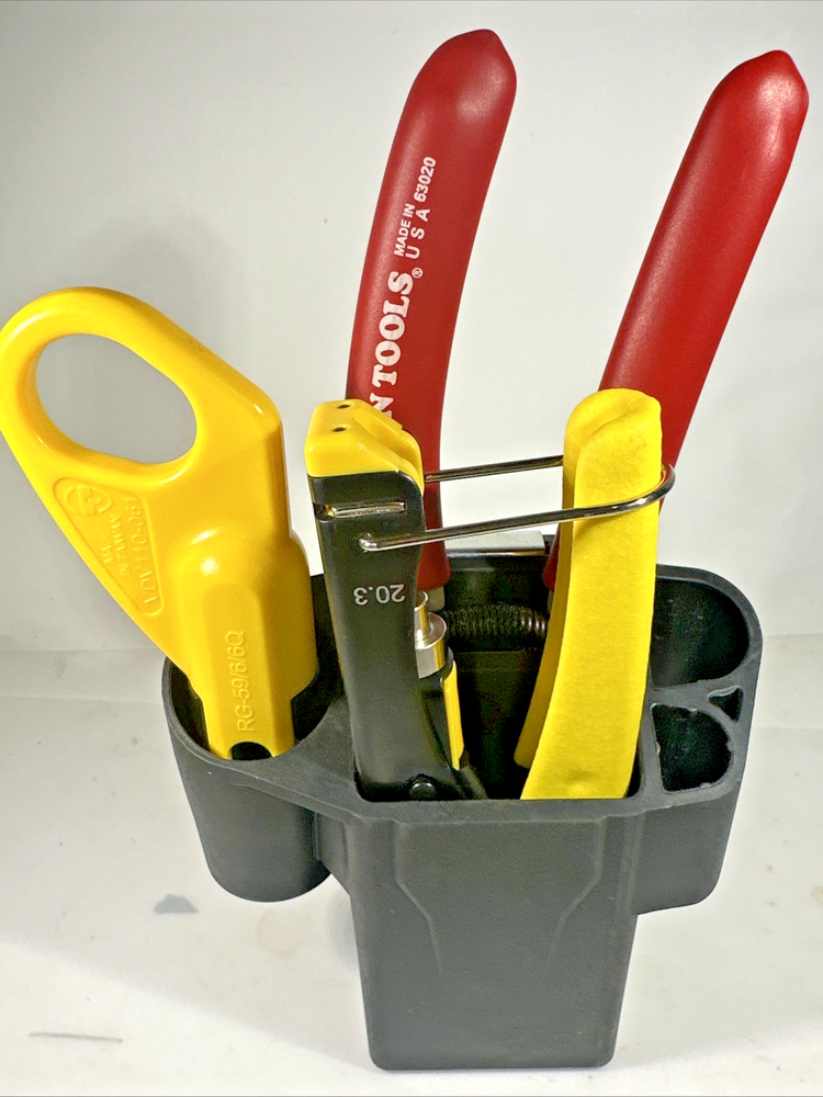 The Klein Tools VDV011-852 Compression Coax Cable Installation Kit is a comprehensive tool kit designed for electrical work. Included in the kit are cable cutters, a hand crimper, and a hand cable stripper, providing everything needed for coax cable installation. With the trusted brand of Klein Tools, this kit ensures high-quality and reliable performance for professionals in the electrical industry.