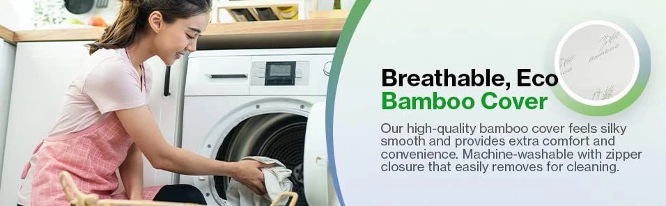 The new and improved Leg Spacer Pillow is designed to provide optimal spinal alignment to help reduce lower back, leg, hip, ankle, or joint pain. This carefully designed leg spacer pillow can be used to place between the legs to keep your legs, hips, and spine parallel and aligned, helping to improve circulation and relieve pressure on those areas for a good night sleep. This latest version comes with an outer gel-memory foam layer which feels soft, comfortable while its firm inner foam layer helps keep its shape, perfect as a body positioner pillow for a side sleeper. Includes a high quality, Bamboo cover (50% Viscose derived from Bamboo, 50% Polyester) which can be removed for easy cleaning. Size: 10 x 8 x 7.5 inches Best Leg spacer pillow, knee Pillow on the Market: This updated and improved version comes with an outer gel-memory foam layer which feels soft and comfortable while its firm inner foam helps keep its shape for enhanced comfort. Helps to keep your legs, hips, and spine parallel and aligned: Relieving strains on those areas and promote circulation. Perfect for a side sleeper: Can be used as a leg spacer and body positioner pillow for a good night sleep. Includes a high quality, bamboo cover (50% Viscose derived from Bamboo, 50% Polyester) which can be removed for easy cleaning. Size: 10" x 8" x 7.5" GUARANTEE - If you are not 100% satisfied, just return it in 30 days for a full refund.