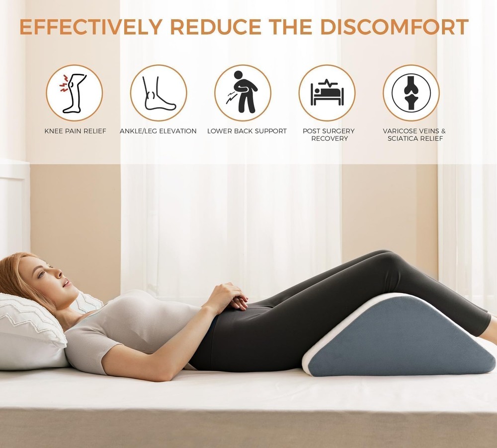This knee wedge pillow is a game-changer for post-surgery recovery or just elevating your legs for comfort. The high-density CertiPUR-US foam provides firm yet cozy support, molding perfectly to your body. The Oeko-Tex certified cover is soft, breathable, and keeps you cool all night. It’s sturdy, well-designed, and really helps with circulation and pain relief. Highly recommend for anyone needing leg elevation!