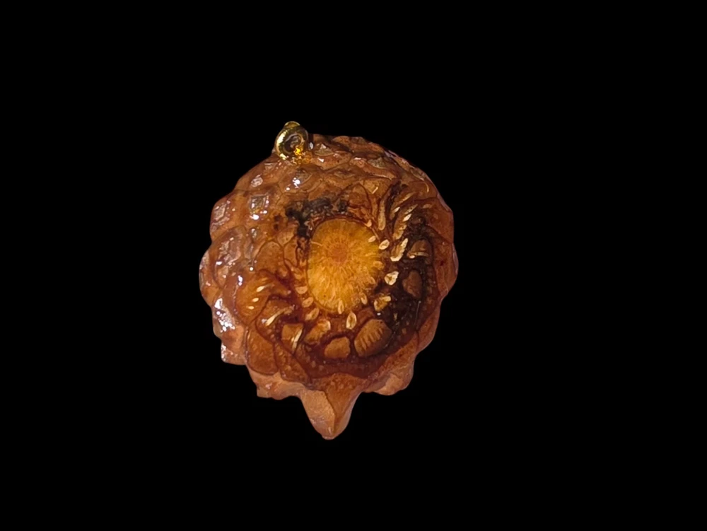 Knobcone Slice Pendant. Shipped with USPS First Class. Made from the Knobcone pine tree from California. Rare and hard to acquire even if you live near the trees. The color looks different in the pictures due to the light that is why I am taking close up pictures of the color. Comes with a Brown leather 18" or 20" corded necklace or a sterling silver chain. Please let me know when you purchase the pendant which one you prefer. Knobcone and lodgepole pinecones react uniquely to prolonged heat exposure. Do not wear while tanning for over 1.5 hours without getting into some shade. Please don't leave them hanging from your car mirror as decorations. The result of extended heat exposure is a slow and steady expansion of the pinecone slice itself, resulting in a "expanded" appearance and will not be able to be worn..I included information on why this is very important. These pendants are sturdy and should last a lifetime of daily use with that in mind. Secondtimearound Pinecone Talismans represent a reclamation of the emblematic power and natural beauty of the Pinecone, the Pineal Gland, and the ancient historical heritage accompanying one of Mother Nature's most compelling organic symbols. Secondtimearound Necklaces and Talismans are made from the polished cross-section of a living pinecone, sustainably harvested in unique micro climates, and specially cut, dried, cured and encased in protective resin. They are elegant, natural, and unique and symbolize the evolution of collective consciousness while harnessing the potent spiritual energy of the Pineal Gland and of the Third Eye Knobcone pines are different. Known as closed cone pines, knobcones require heat, usually from fire, in order to open up and release their seeds. This classic plant adaptation to fire is because the cones are effectively glued shut with resin, a phenomenon called serotiny. When the heat of fire melts the resin, the ¼-inch black seeds are released. Since knobcone pines tend to grow in fire-prone areas, they have evolved this adaptation over millennia, allowing the species to persist even if all the mature trees perish in a fire. Areas where knobcone pines were burned are soon covered in a blanket of seedlings. After a fire the seeds are released en masse, thriving because there is reduced competition from other plants. It is interesting to note that in the absence of fire, knobcone cones can eventually open after 20 or so years. Knobcone pine trees don’t usually get very tall, maxing out at about 30 feet, and they are often scruffy-looking due to their adaptation to living on poor, gravelly soils in hot, dry areas. The needles are a faded olive-green color and are borne in bundles of three. The cones are distinctive, as they grow clustered tightly around the branches in whorls rather than at the branch tips, as in other pine species. The cones are asymmetrical and since the scales are tightly shut, they appear knobby. Cones stay on the tree for years—so long, in fact, that the wood of the branches sometimes grows around them, leaving odd bulges in the branches.