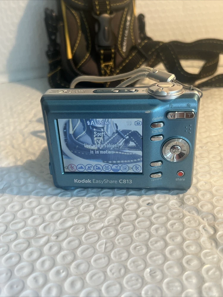 We Strive for nothing less than 5 Star FeedBack and 100% satisfied buyers! If for any reason you are not completely satisfied with your purchase before leaving feedback Please contact us with any questions or concerns. Kodak EasyShare C813 8.2MP Digital Camera Blue-With 32GB SD Card-Tested/Working Condition: TESTED EXCELLENT WORKING WITH SD CARD AND CASE condition see photos original . If there is anything wrong with the item or not as described, please contact me as soon as possible. Item is for sale as it came to us. All items pictured are included in auction. No other accessories are included in auction. please read our descriptions and check our pictures for the best item explanation before purchase. Please read the item description and look at the photos carefully before bidding We will describe the item to the best of our ability. PLEASE ASK QUESTIONS PRIOR TO BIDDING. WE WILL BE MORE THAN HAPPY TO ANSWER QUESTIONS THE BEST WE CAN Buyer assumes responsibility for all shipping and processing charges. THIS AUCTION IS FOR 1 (one) item unless otherwise specified. Bchanes27 reserves the right to end any auction at anytime! All of our items will typically ship within 1 Business day After payment is confirmed. WE ONLY ACCEPT PAYMENT THROUGH PAYPAL AND ONLY SHIP TO U.S. ADDRESSES Except Hawaii, Alaska and Puerto Rico. Be sure to check out our other items and save us as a favorite seller! Keep an eye on our auctions, you never know what we might have! We appreciate you looking at our items, Good luck and Happy Bidding